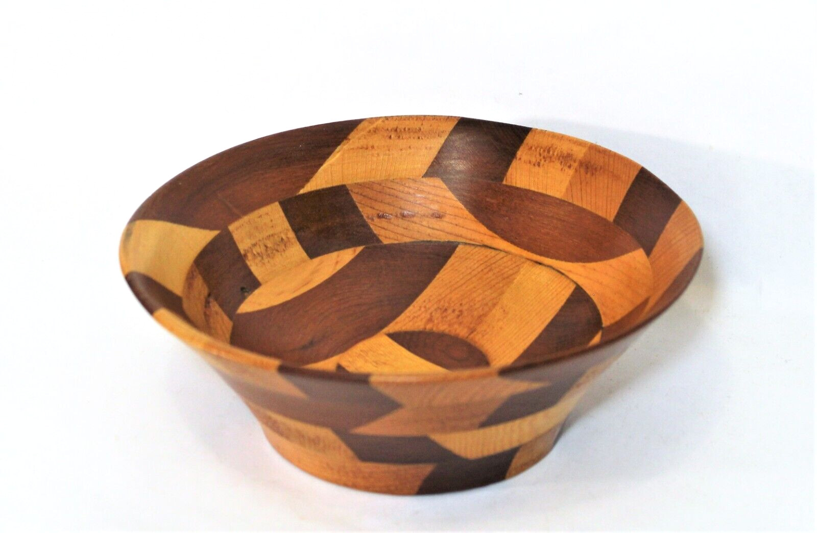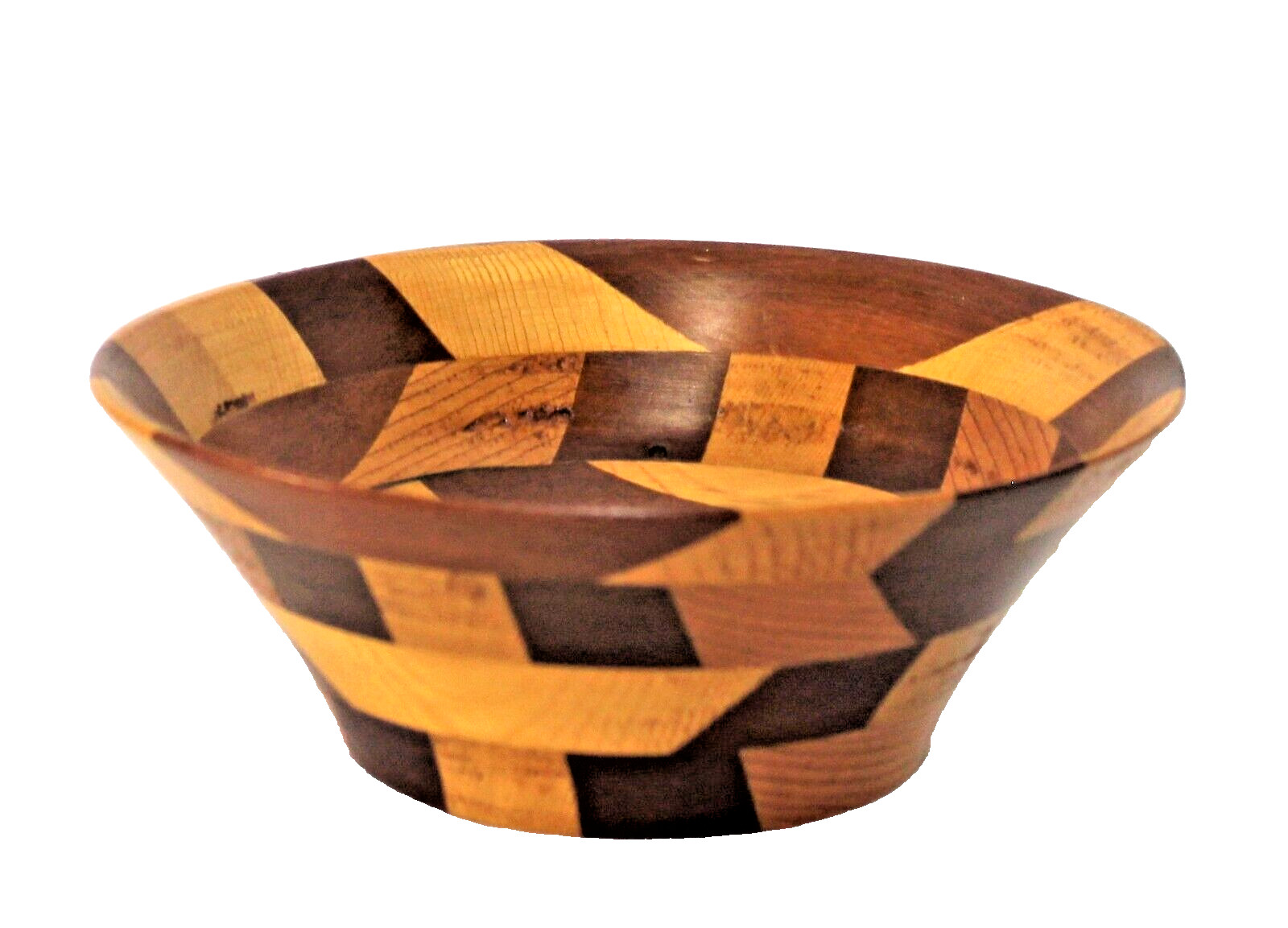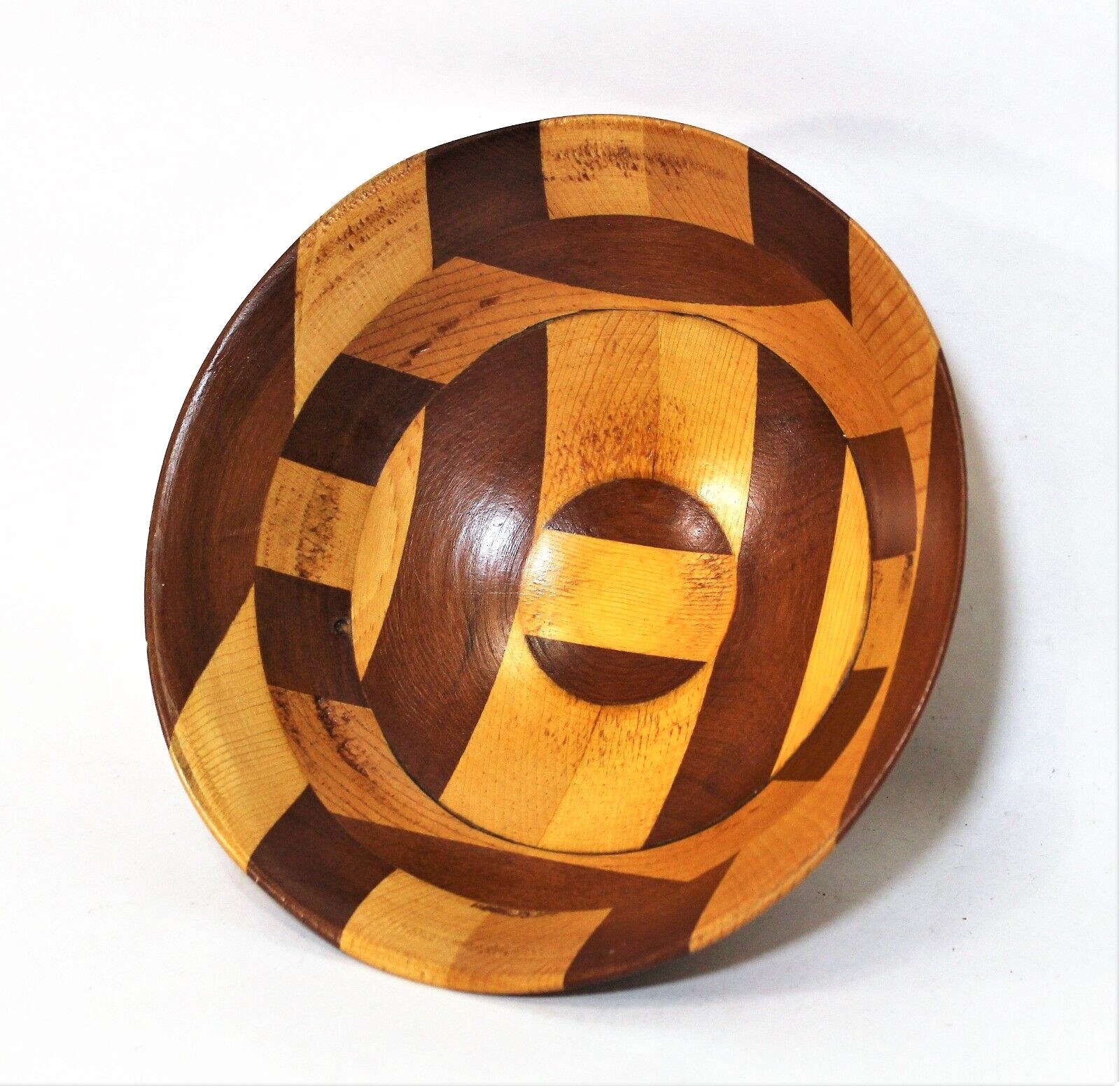 • Wood Bowl Segmented 7" Round Hand Crafted Two Tone Stain