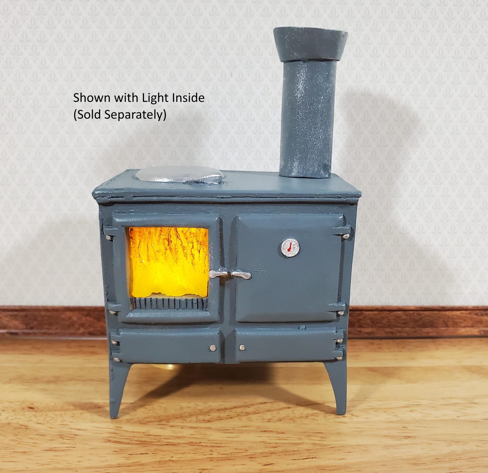 • Dollhouse Wood Burning Stove Vintage Style w/ Chimney 1:12 Scale Hole for Light
