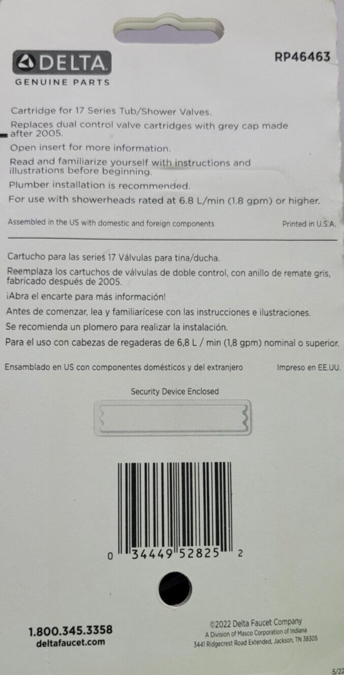 Delta RP46463 Cartridge Assembly MultiChoice universal valve body 17 or 18 ser
