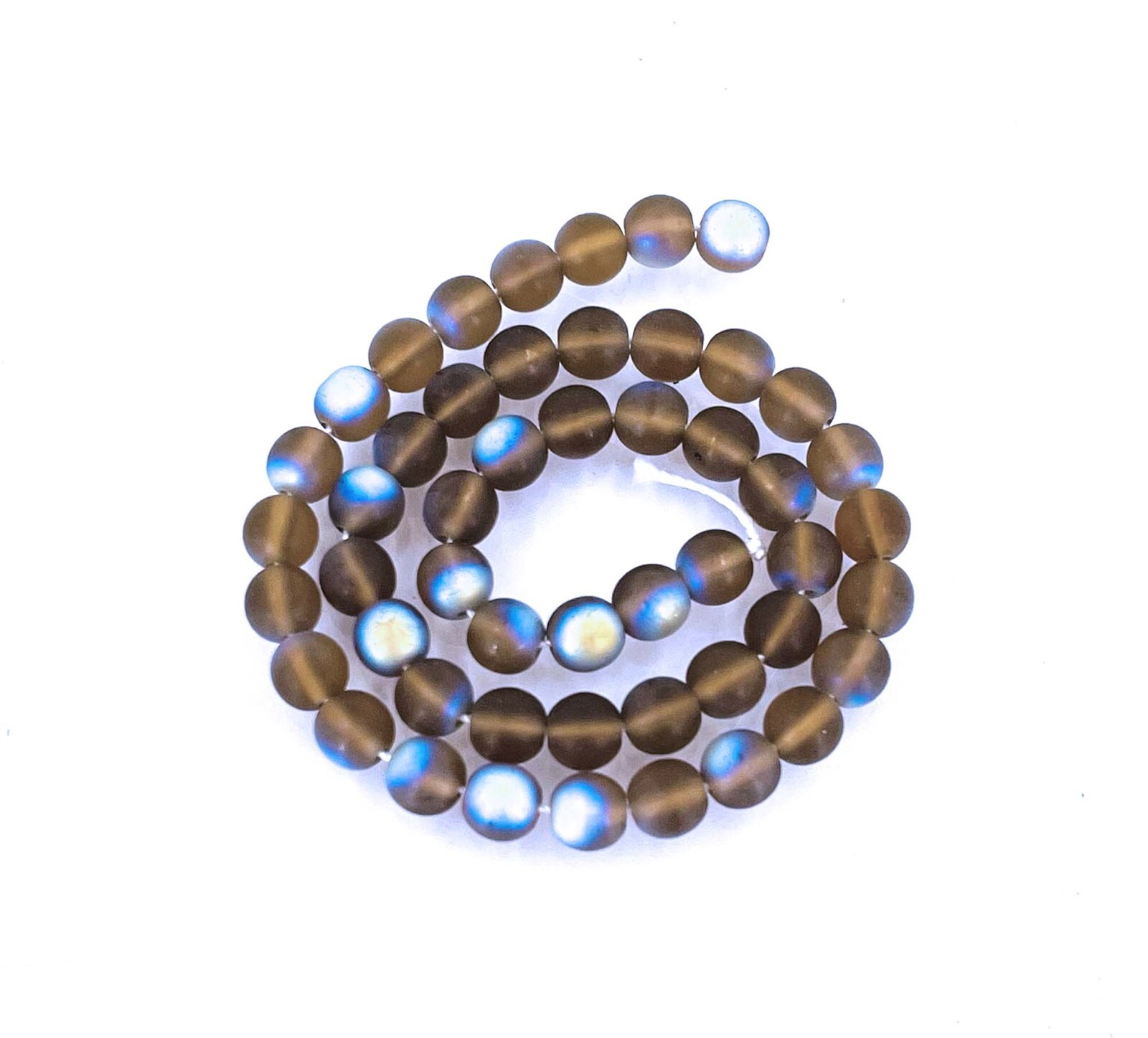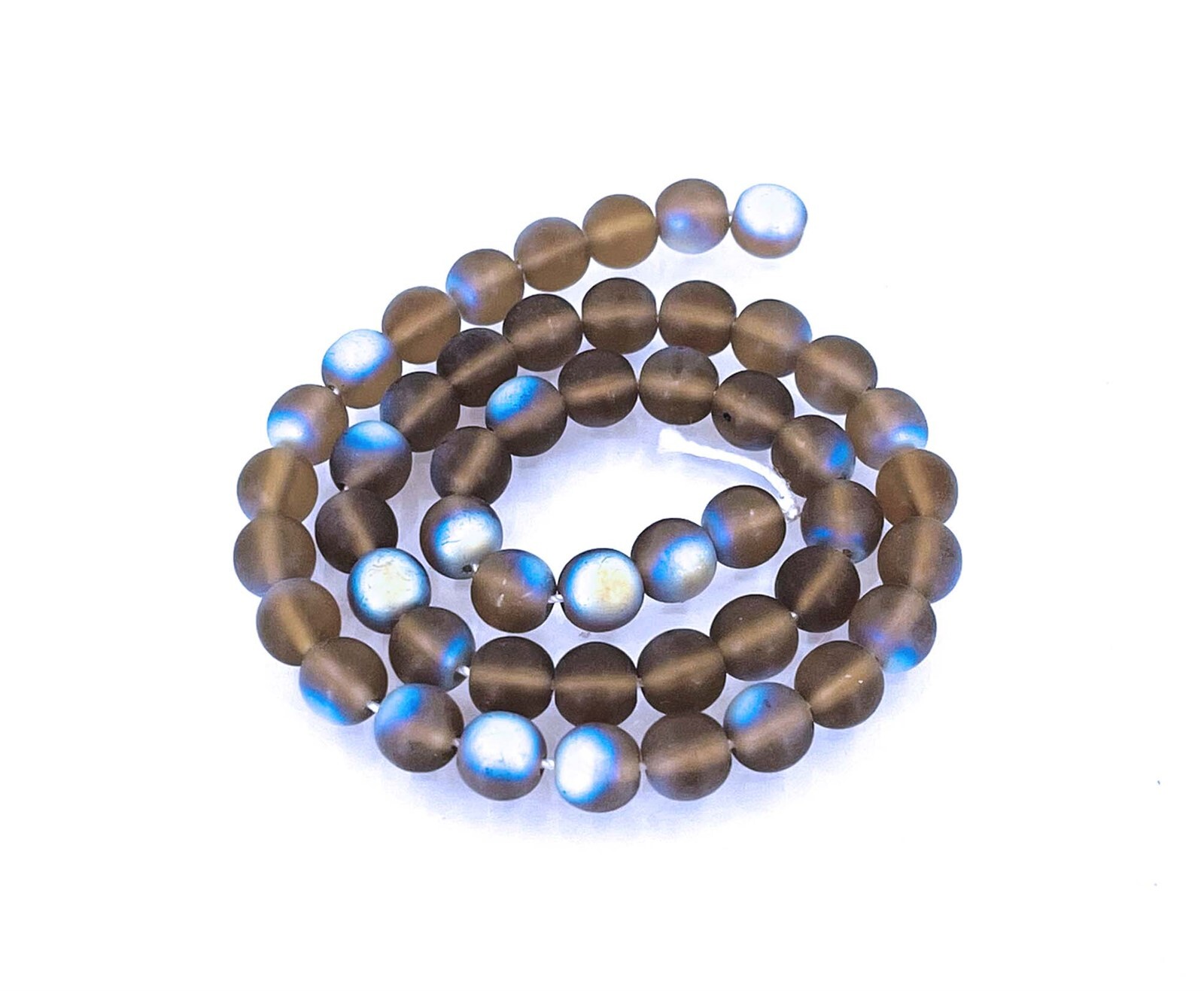 как выглядит 50 Czech Frosted Sea Glass Round Beads - AB Matte Smoky Topaz - moonstone 6mm фото