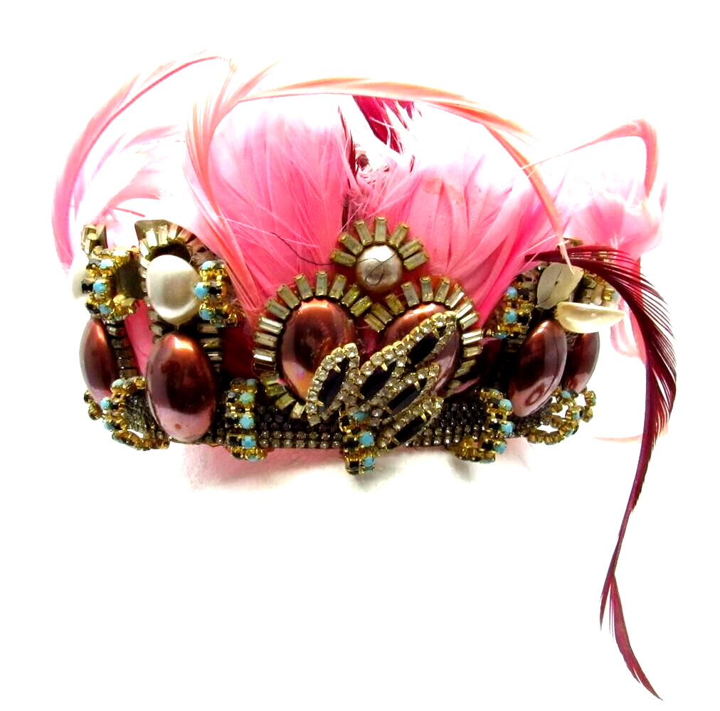Gorgeous Genuine Feather Rhinestone Antique Crown Headpiece For Restoration