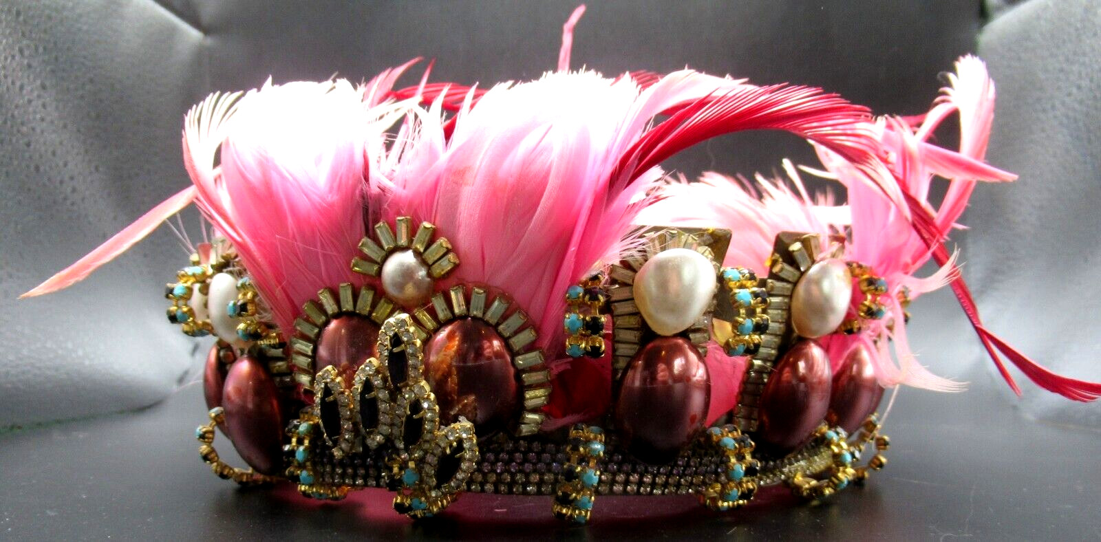 как выглядит Gorgeous Genuine Feather Rhinestone Antique Crown Headpiece For Restoration фото