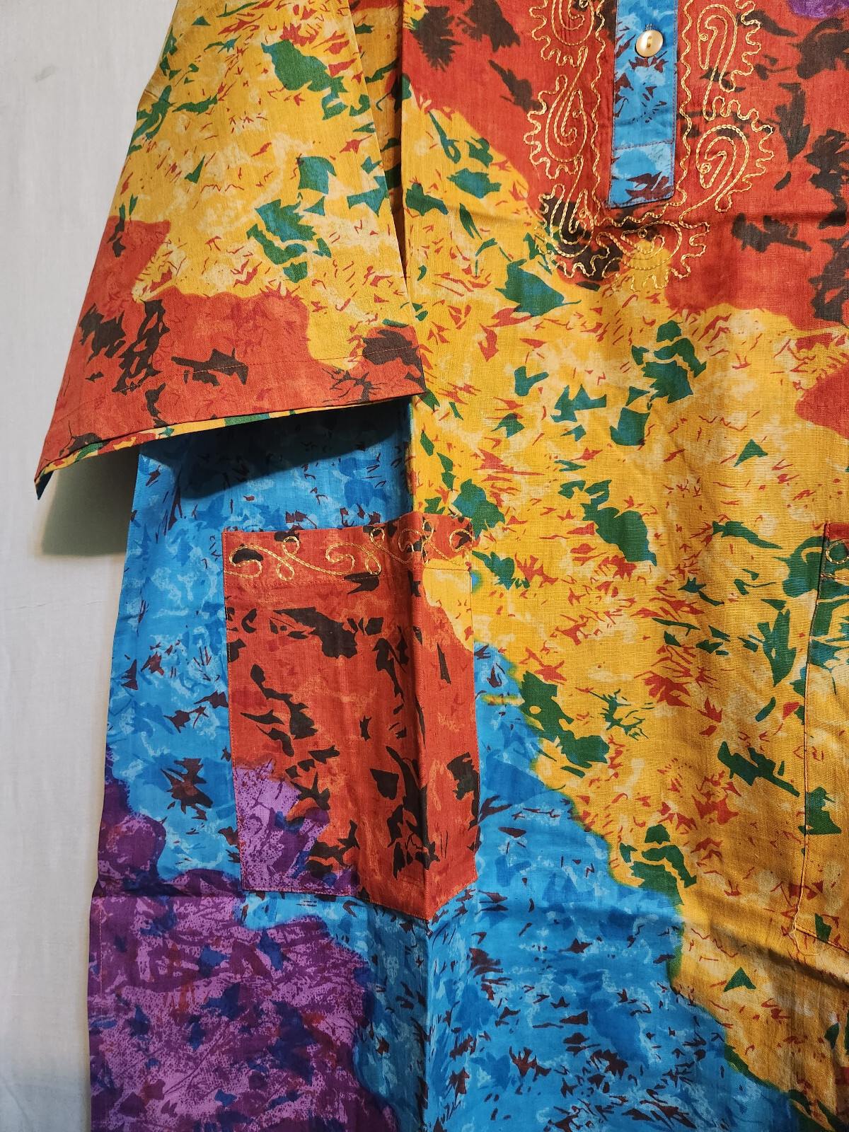 Men Women African Dashiki Pant Suit With Scarf Tie Dye Print Cotton Free Size