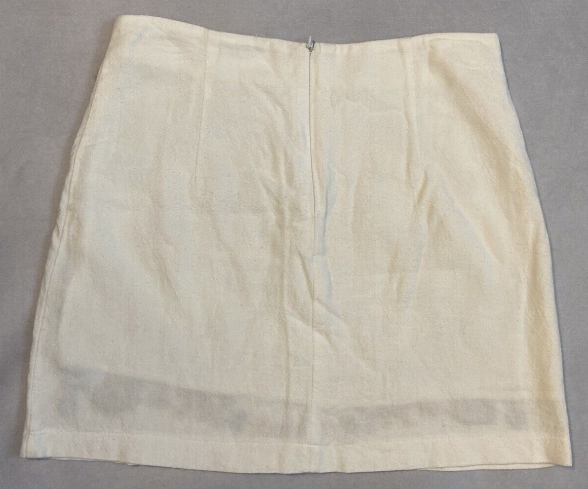 Altar d State White Embroidered Short Skirt Medium Floral Linen Cotton