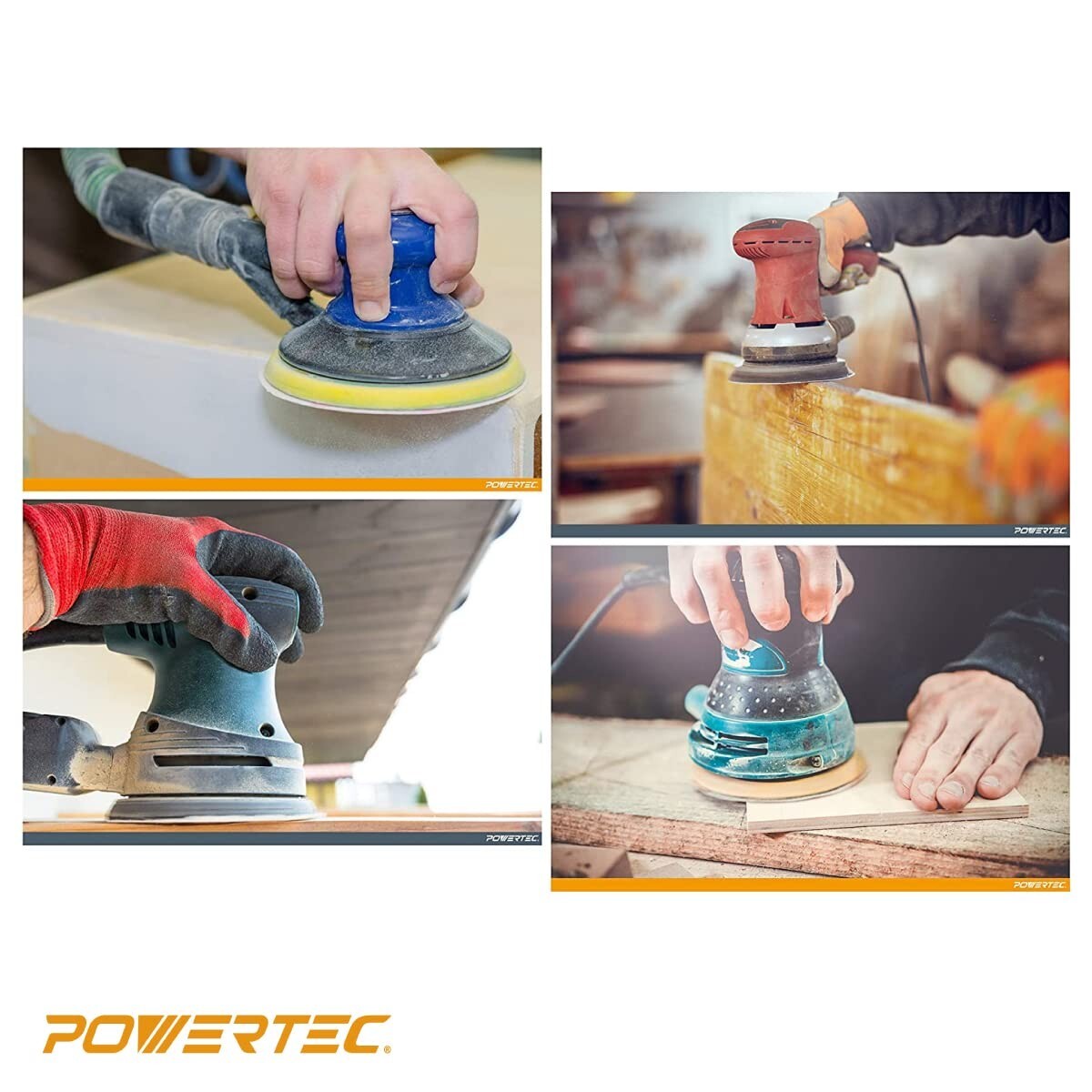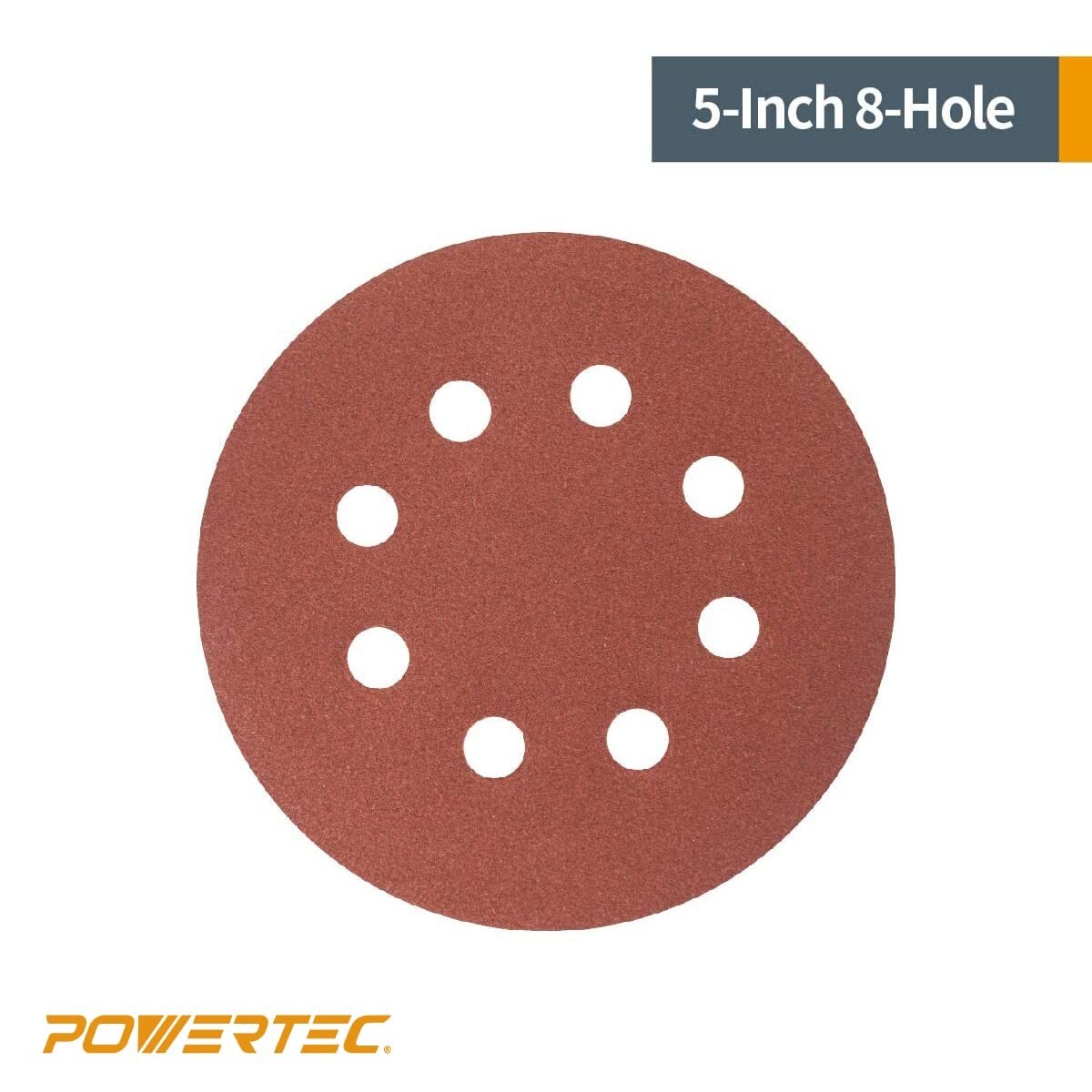 POWERTEC 45008-P2 5 Inch 8 Hole Hook and Loop Sanding Discs, 80 Grit, 50 PK
