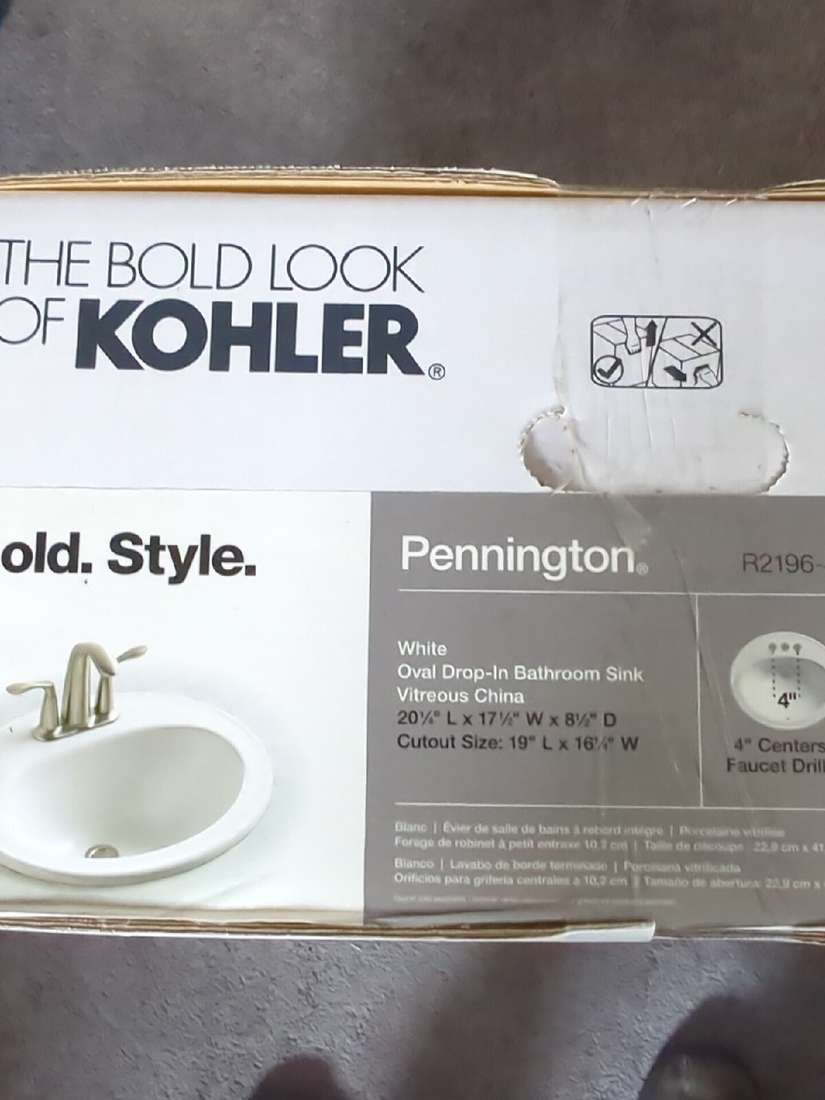 Kohler Pennington 20-1/4 Drop In Bathroom Sink 3 Holes White K-2196-4-0 New