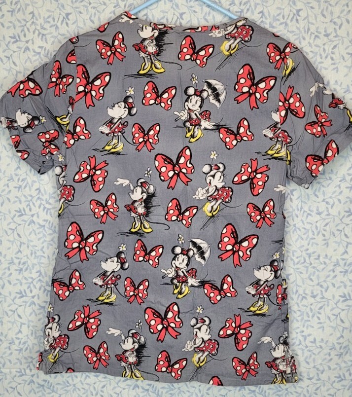 Disney Women's Gray Minnie Mouse Short Sleeve Uniform Scrub Top Size XS