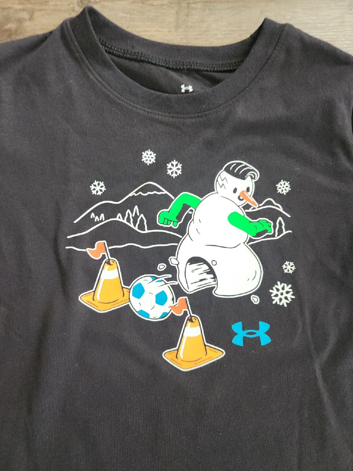 Under Armour Boys Size 5 Toddler Snowman Winter Soccer Black Shirt New NWT