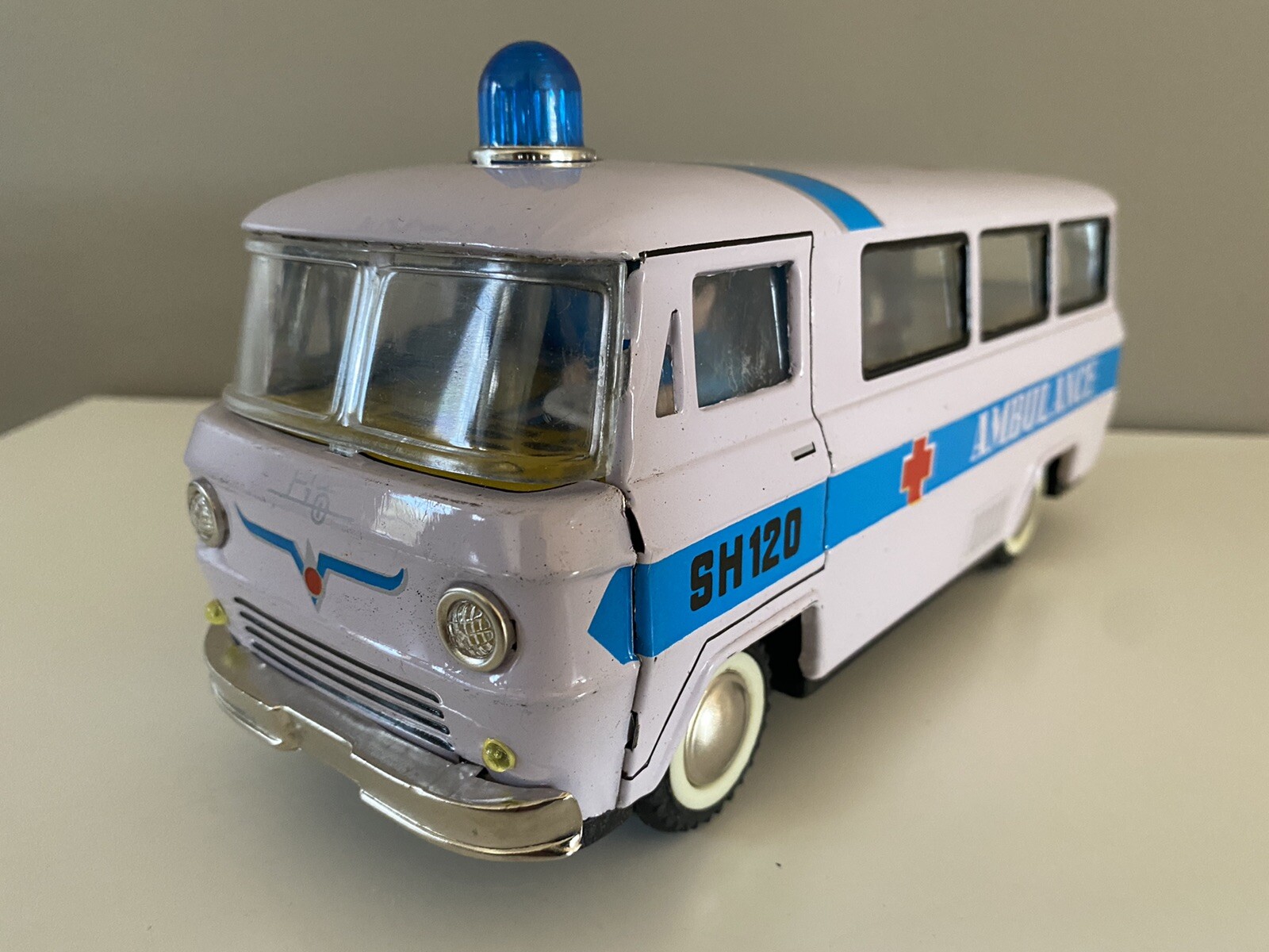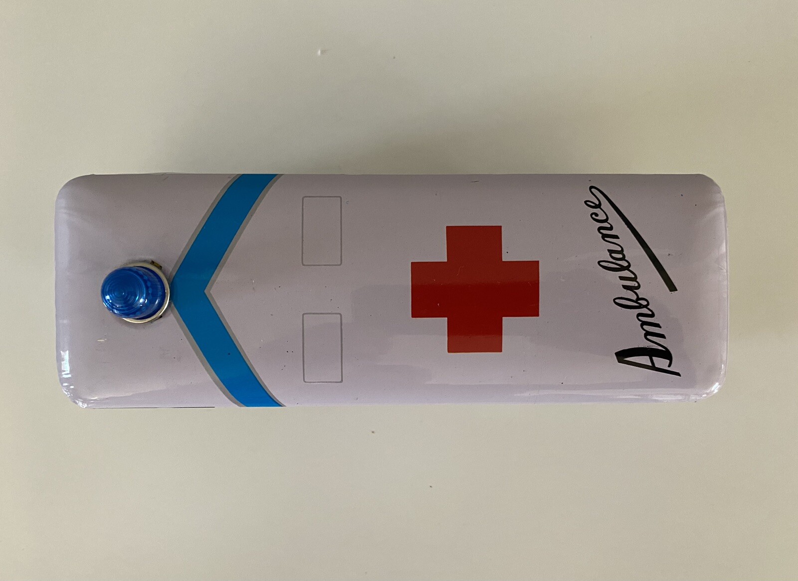 Vintage Tin Litho Friction Ambulance Van MF 132 With Box Instructions-Tested