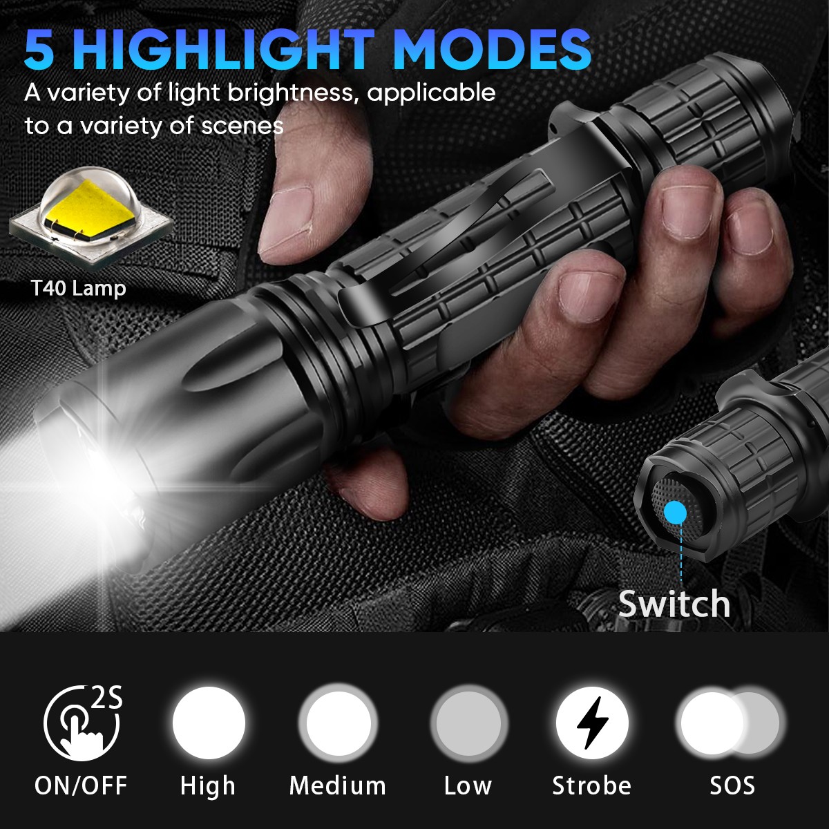 Packgage: 1x T40 LED Flashlight + 1x Battery + 1x USB Charger + 1x Cable