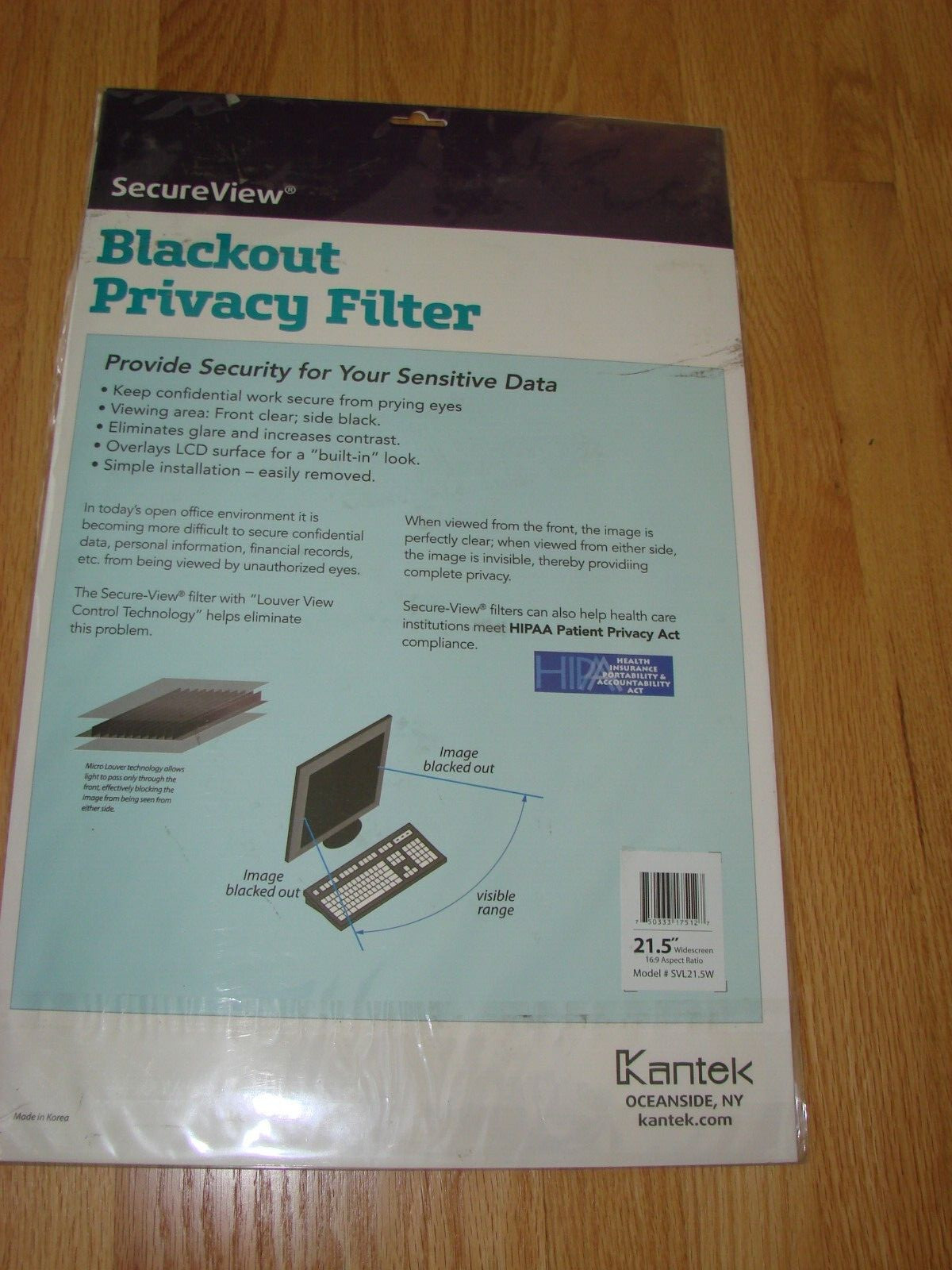как выглядит Kantek SecureView Blackout Privacy Filter 21.5-Inch Widescreen Monitors SVL21.5W фото