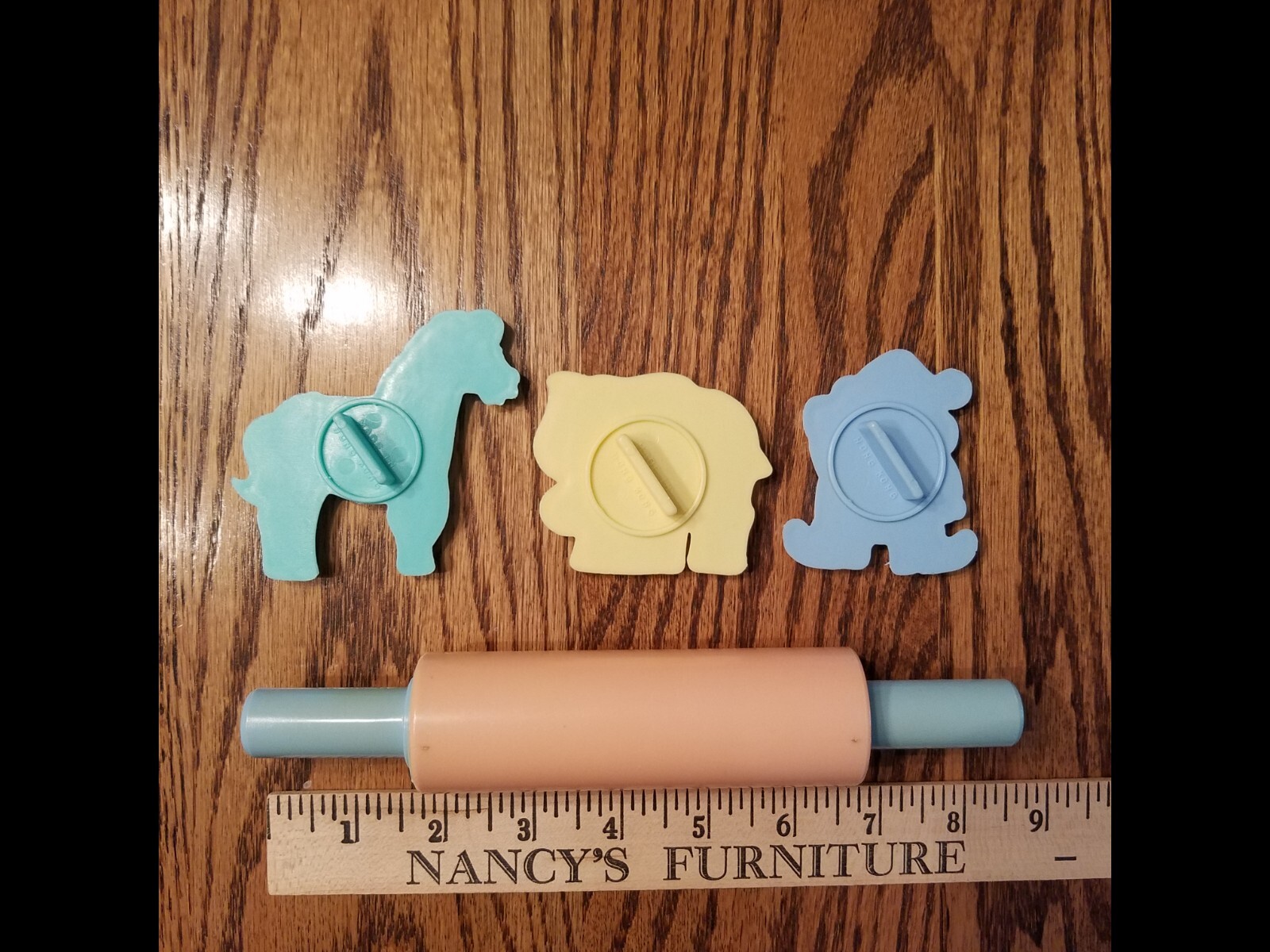 как выглядит Vintage Childs Bakeware Set Rolling Pin Cookie Cutters Hong Kong фото