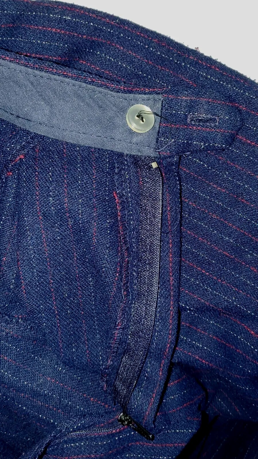 как выглядит VTG Pin Striped Pleated Navy Blue XXS Slacks 1970s DOES 30s Fashion Conspiracy фото