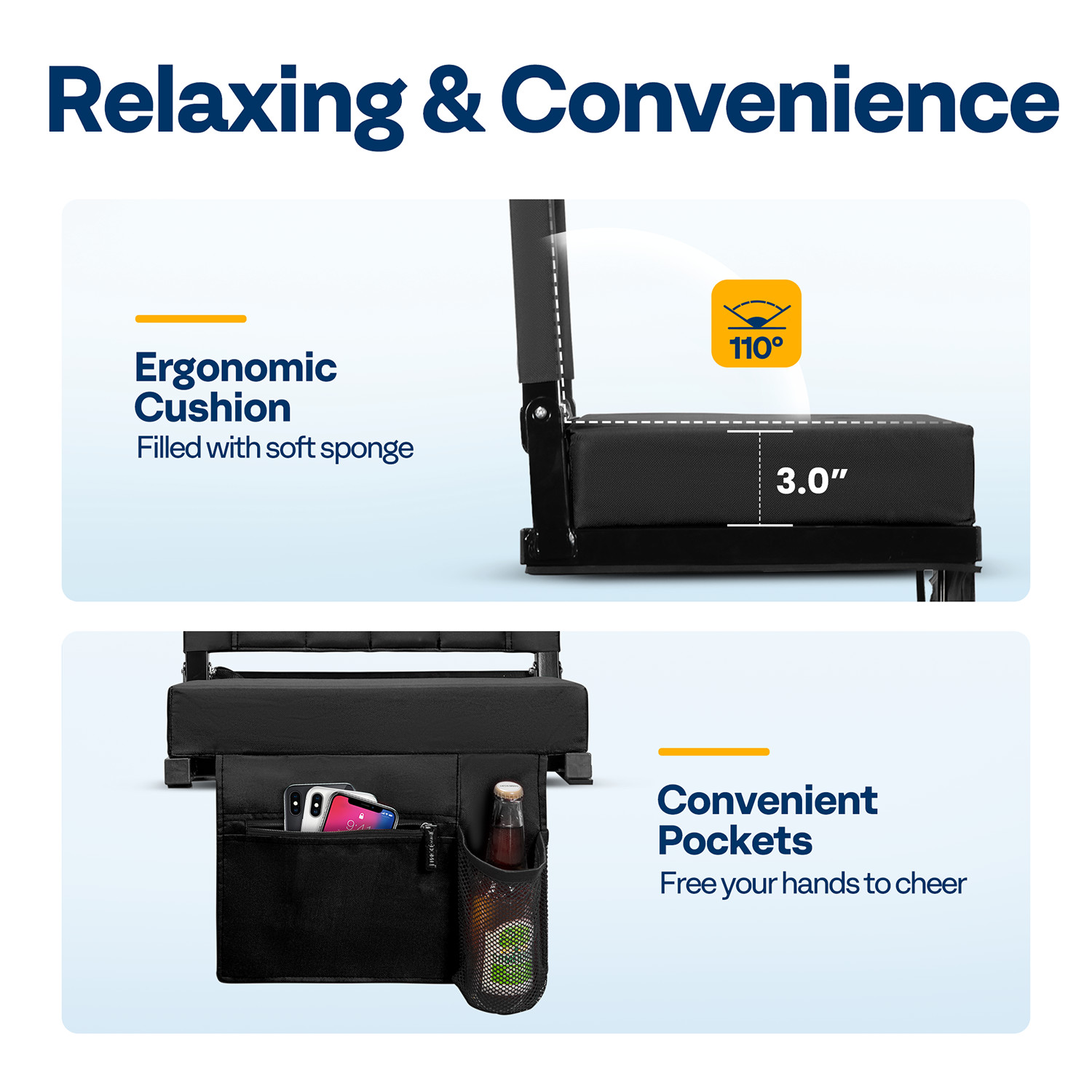 2pc Portable Folding Stadium Seat Chair Padded w/ Cup Holder Strap Bleacher Seat