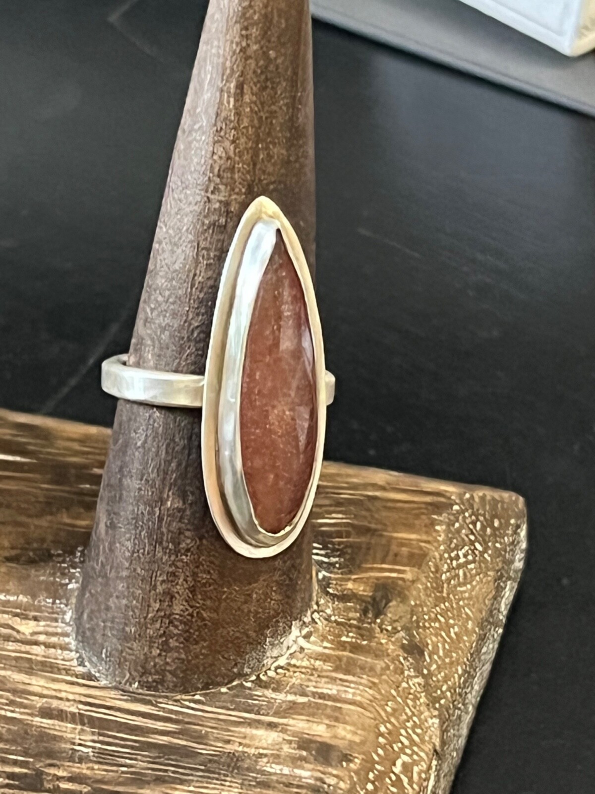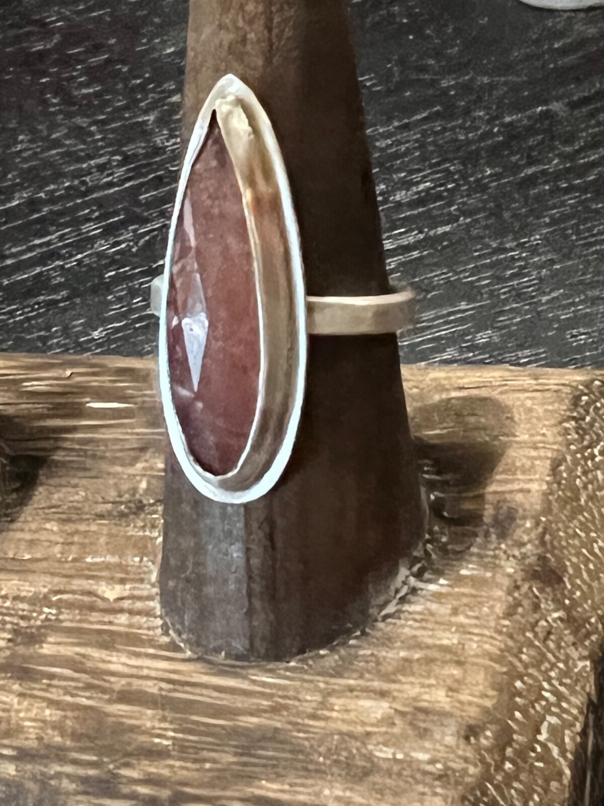 Hand Crafted Strawberry Quartz Ring - Sterling Silver - Size 8.5
