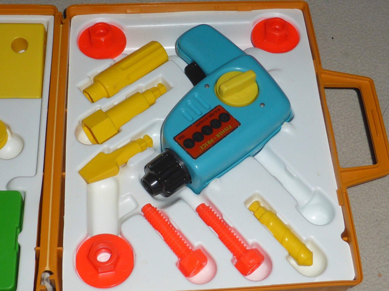 FISHER PRICE TOOL KIT W CASE 1977 TOY CHILD 924 BLUE POWER DRILL SCREWDRIVER