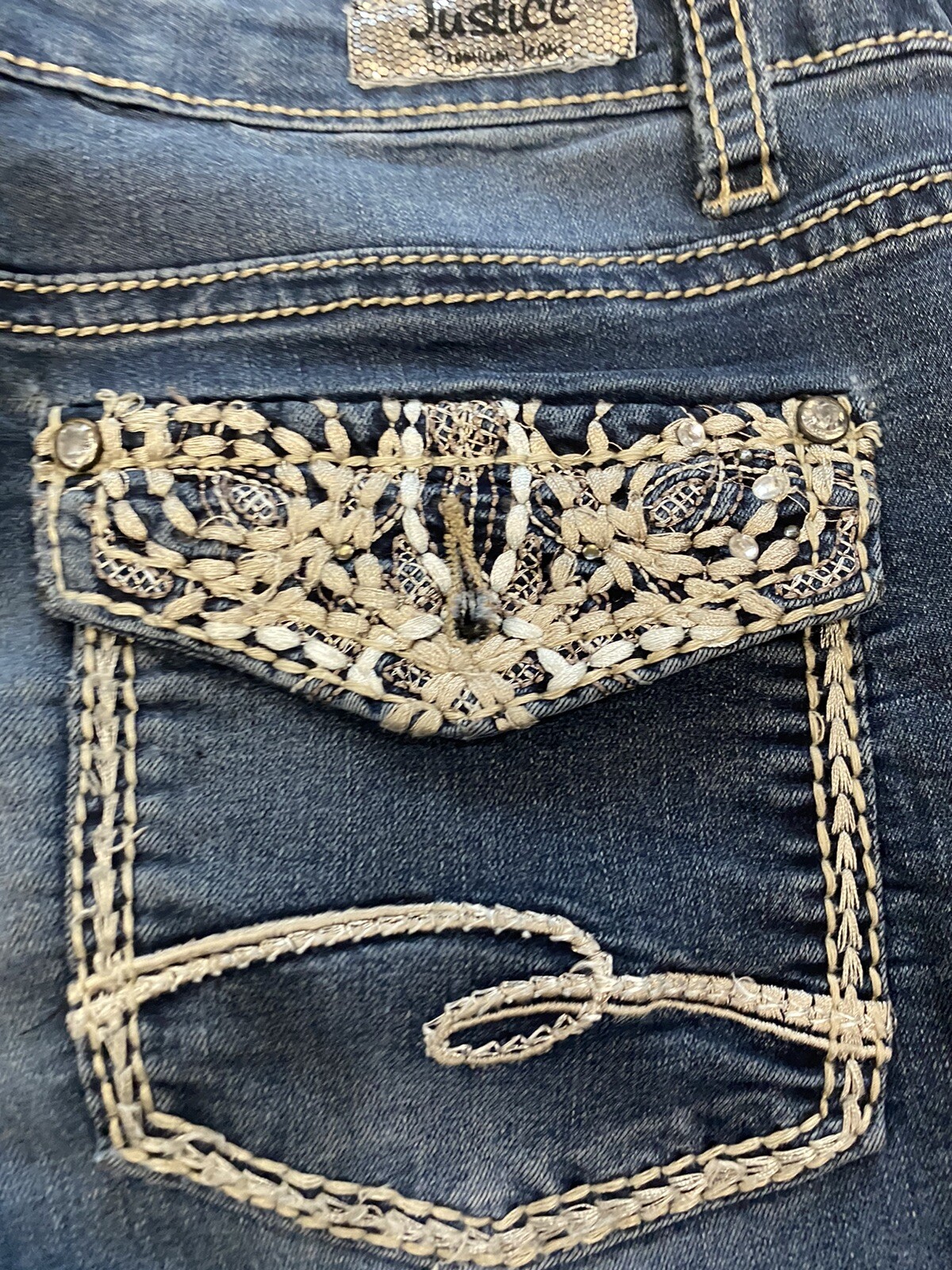 Justice Premium Girls Simply Low Super Skinny Dark Wash Bling Size 12.5 Jeans