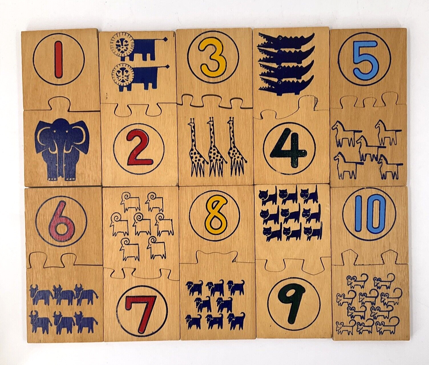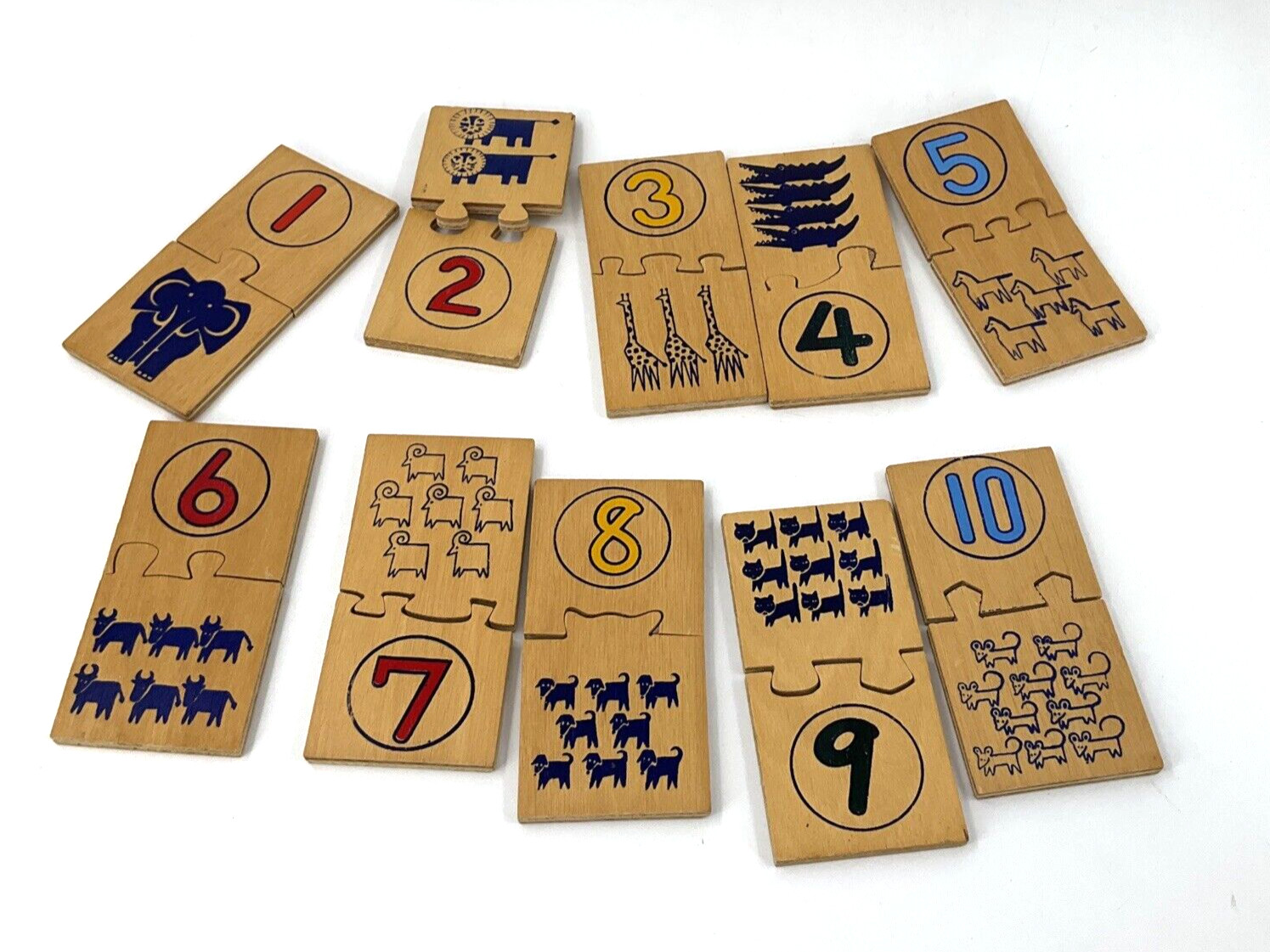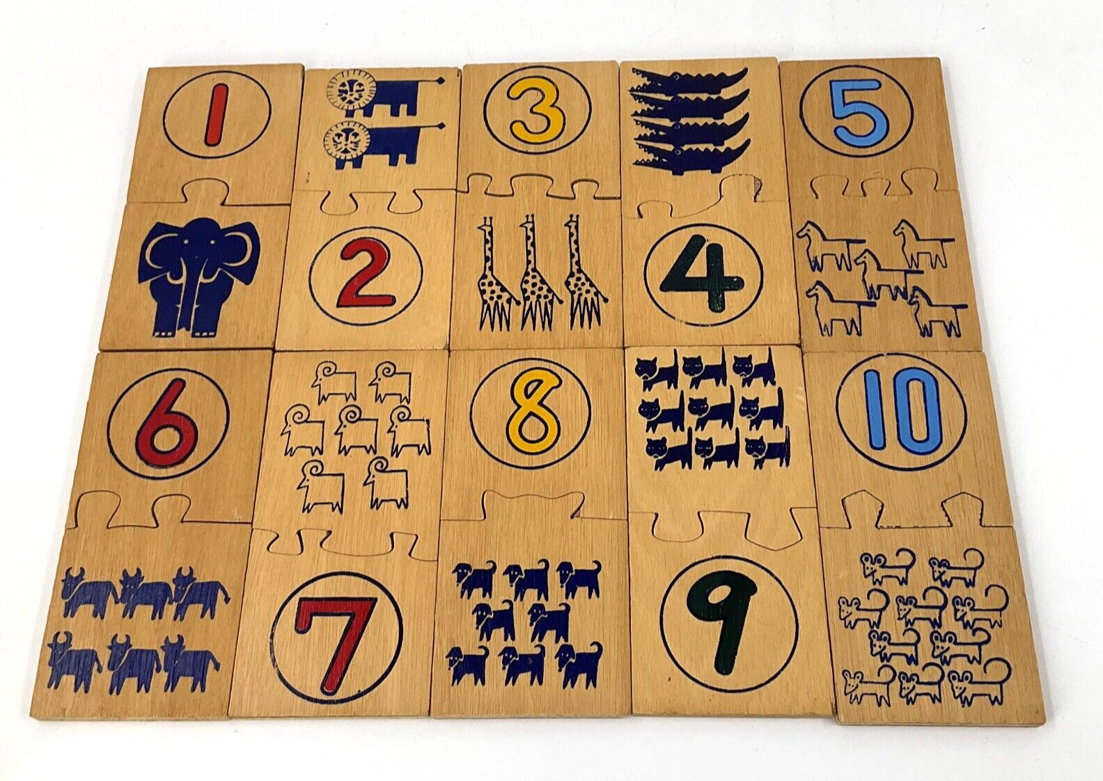 Vintage Wooden Number Puzzle Interlocking Pre-School Children Learning In Box