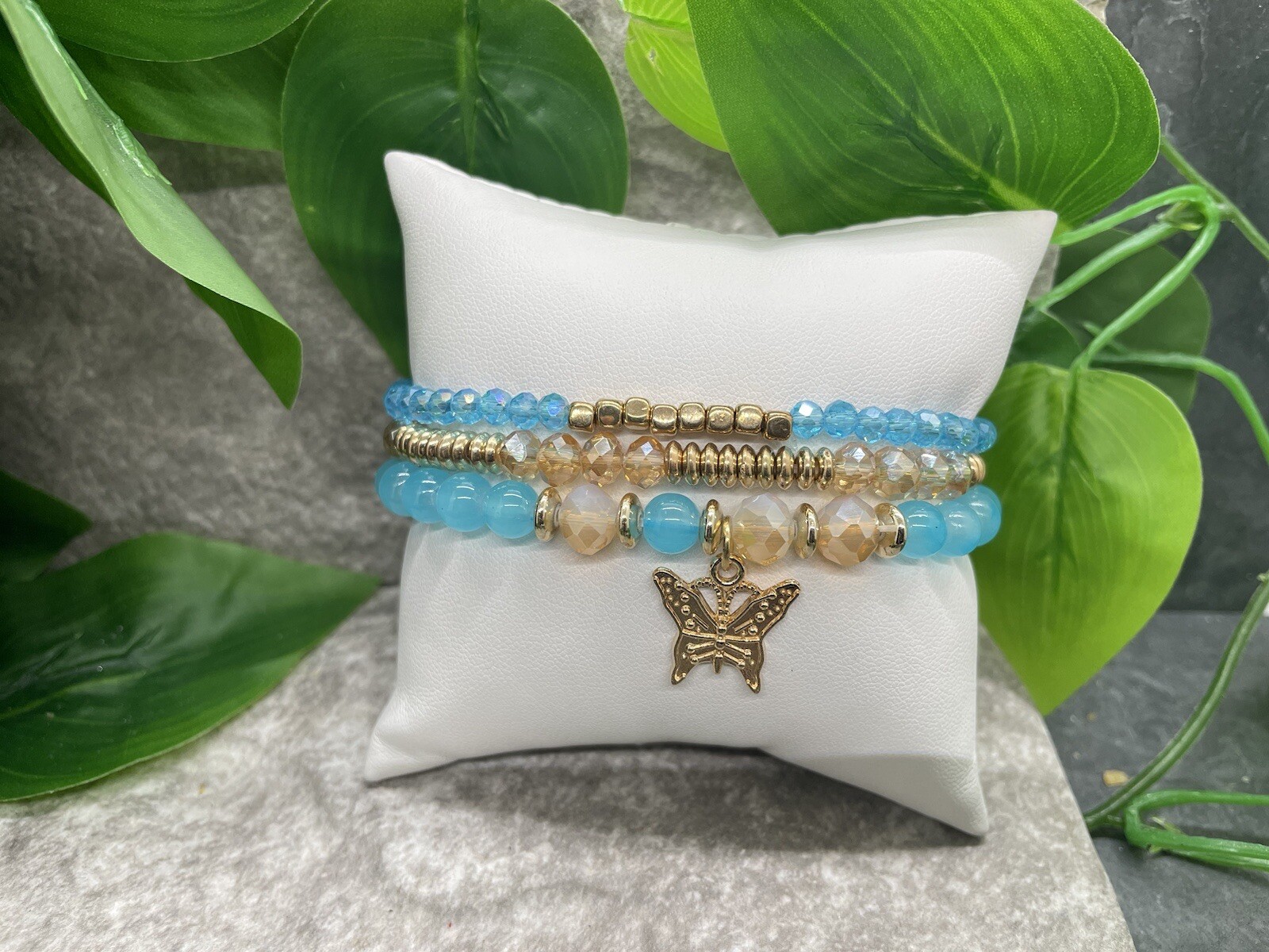 3 PC Handmade Boho Beaded Stackable 6.5 Plus Stretch Bracelet Set New A2911