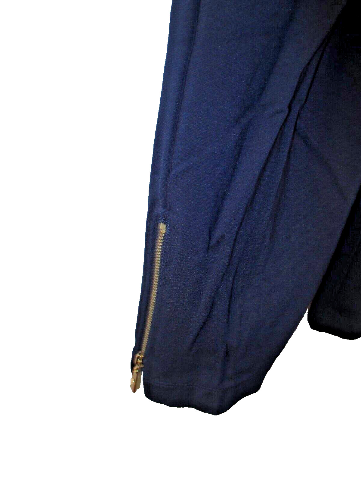 как выглядит Belle by Kim Gravel Goldtone Zip Ponte Knit Slim Leg Pants Navy Womens Size 12 фото