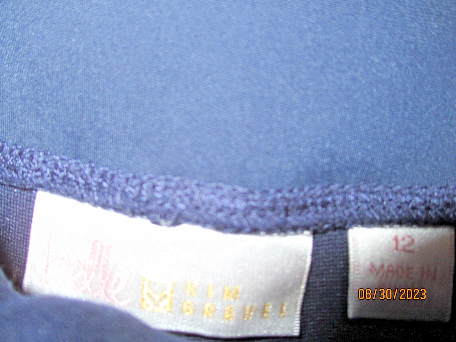Belle by Kim Gravel Goldtone Zip Ponte Knit Slim Leg Pants Navy Womens Size 12