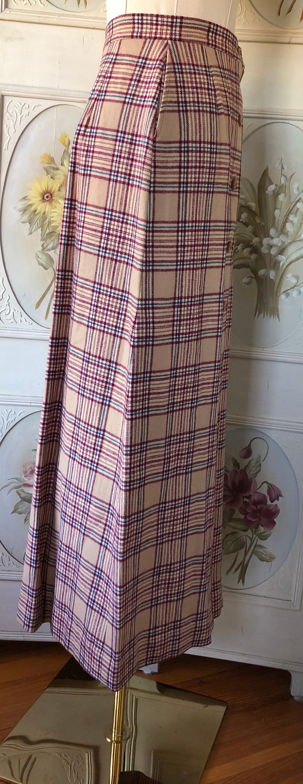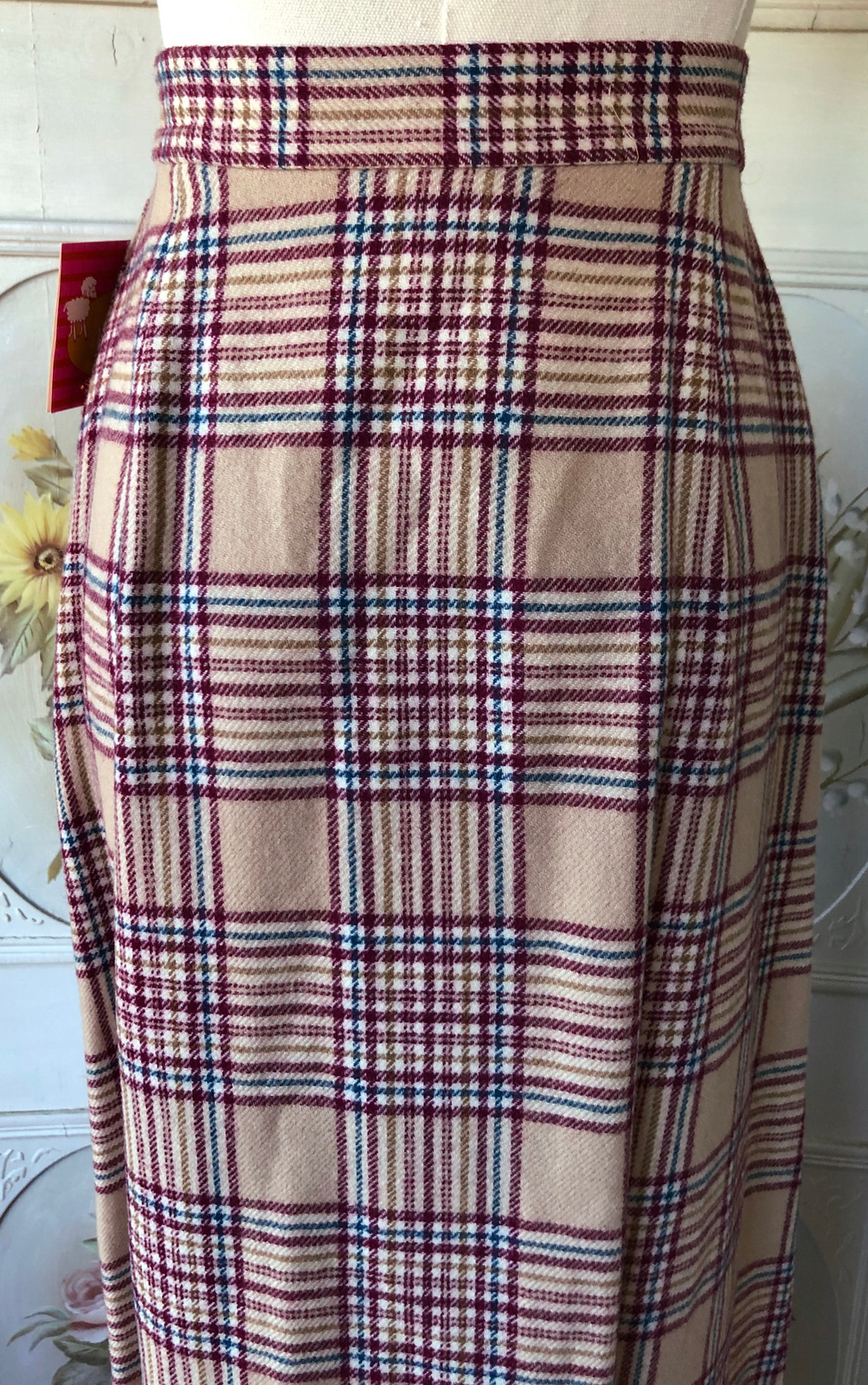 NEW NWT VTG 60s PENDLETON WOOL TARTAN PLAID MAXI BUTTON SKIRT TAN RED 7
