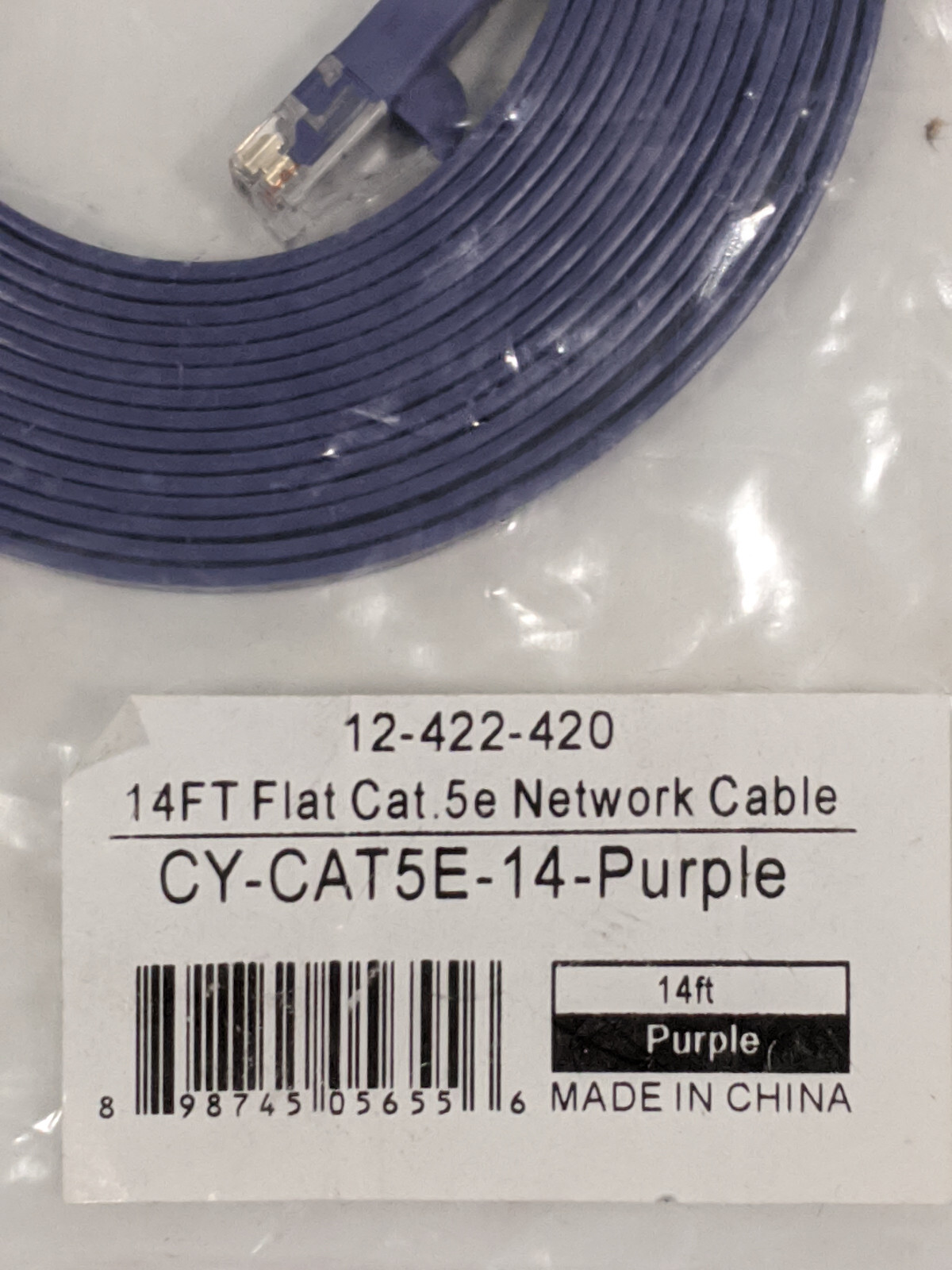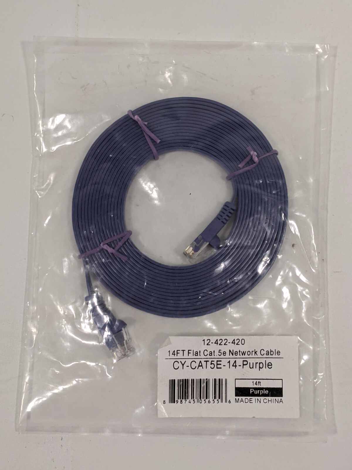Network Cable 14 Ft. Flat Cat 5e CY-CAT5E-14-Purple Lot of 4
