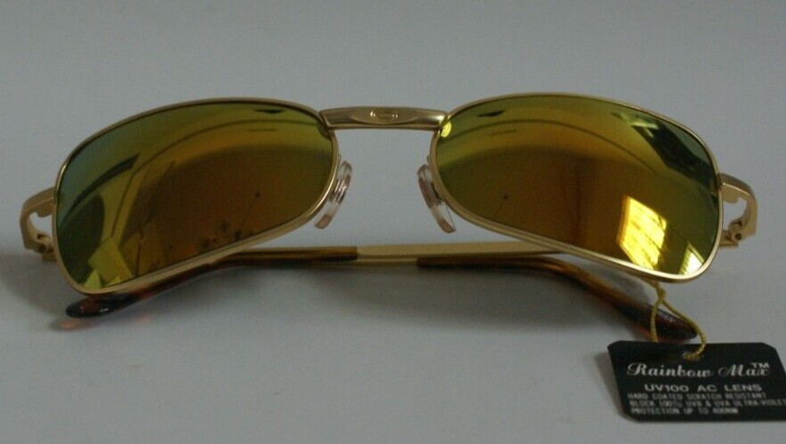 NWT True Vintage 90's Paddle style Sports wrap w/iridium gold mirror Sunglasses