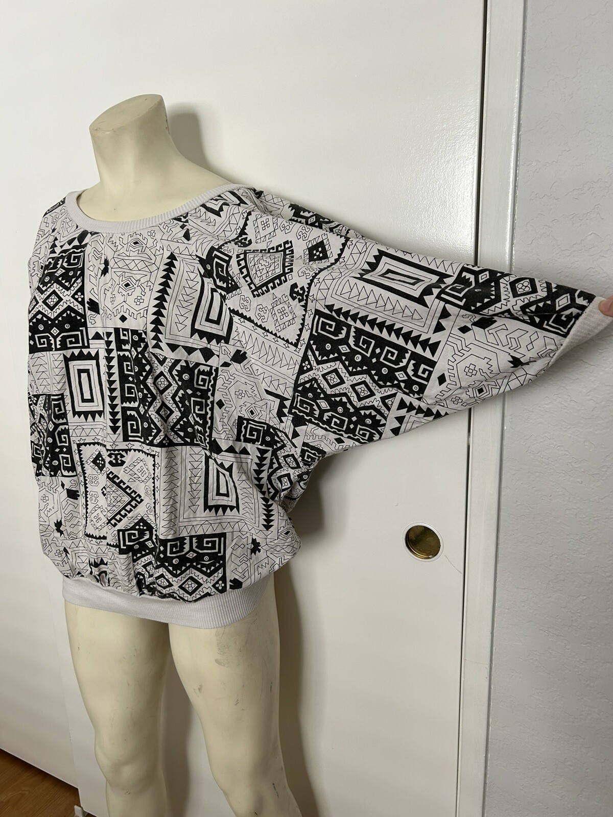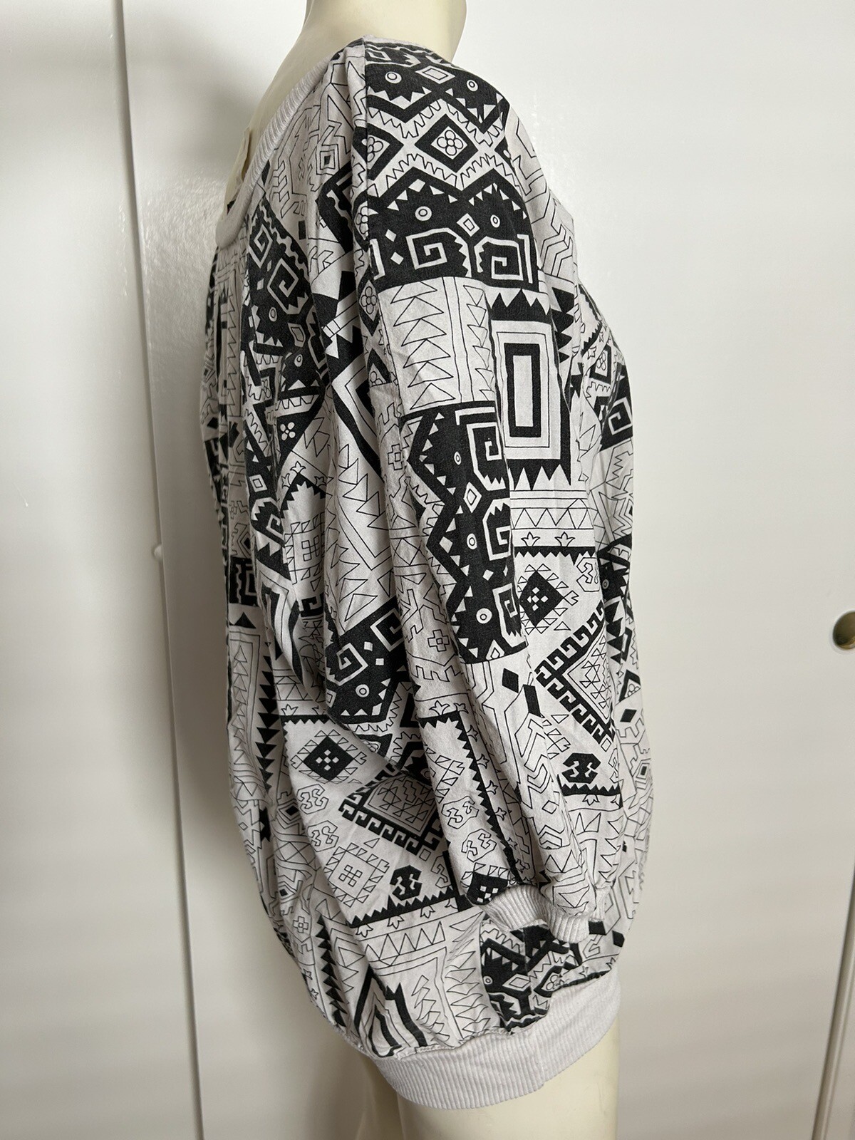 Vintage 80s Baggy Sweatshirt w/ Geometric Aztec Pattern Avant Garde New Wave