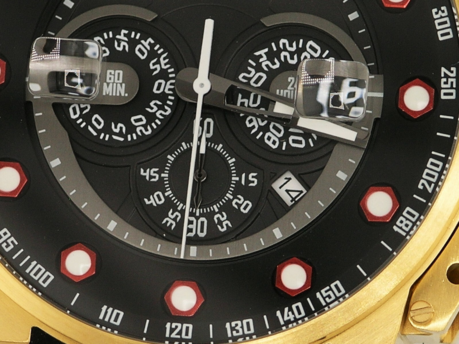 Особенности: 12-Hour Dial, Chronograph, Date Indicator, Luminous Hands, Luminous Indexes, Multi-Dial, Push/Pull Crown, Seconds Hand, Water-Resistant