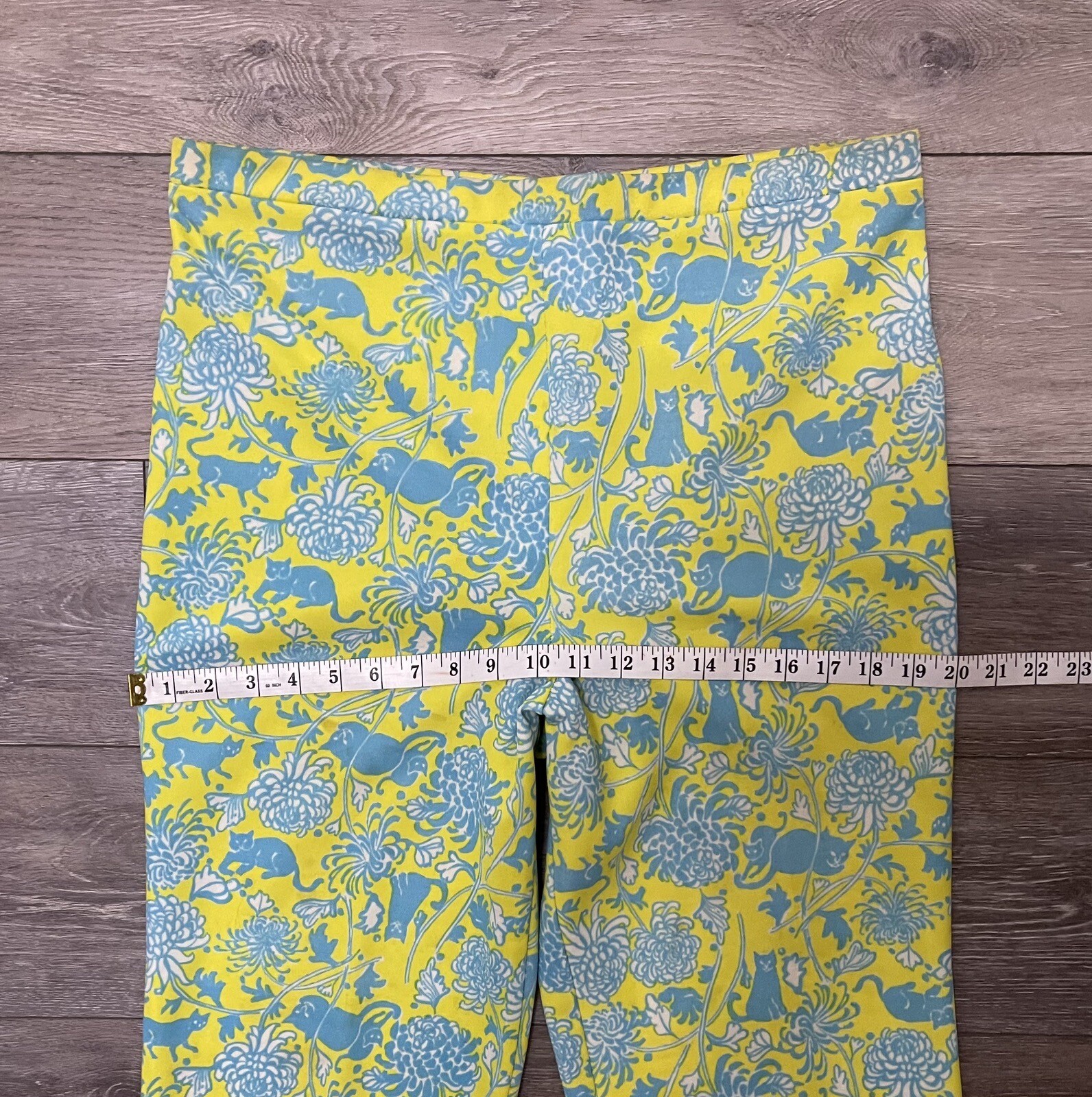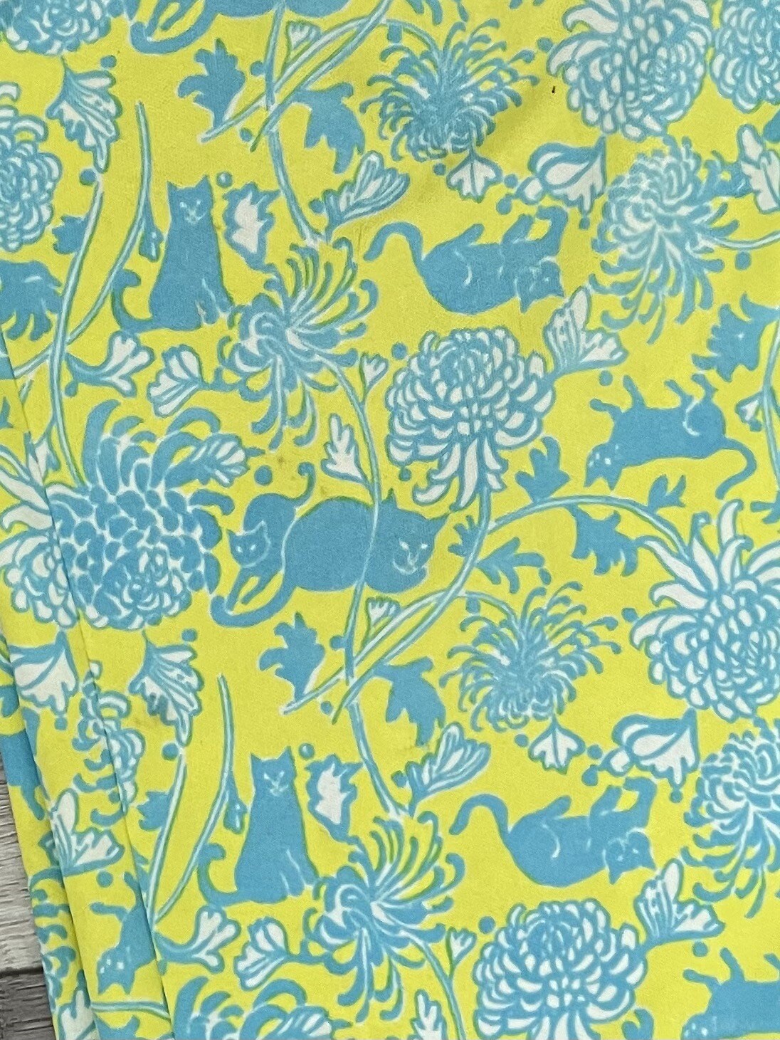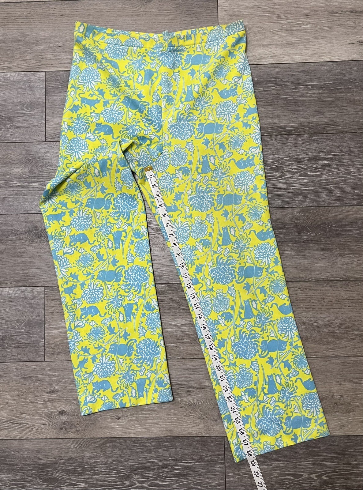 как выглядит Vtg 70 s Lilly Pulitzer Yellow Green Cat Print Elastic Waist Polyester Pants 34 фото