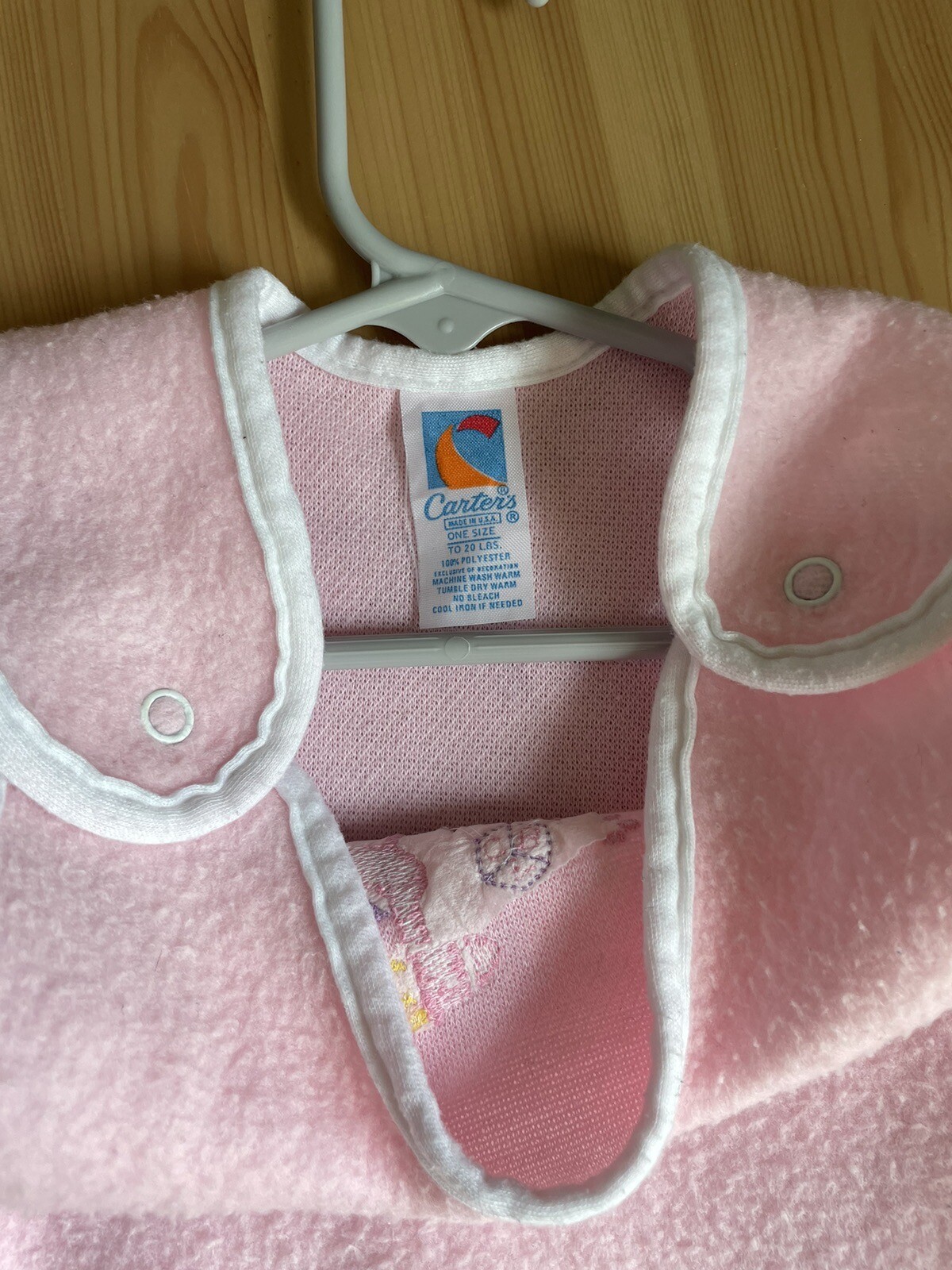 как выглядит 80s Vintage Carter s Baby Sleep Sack Seat Belt Slot Pink Embroidered Made In USA фото