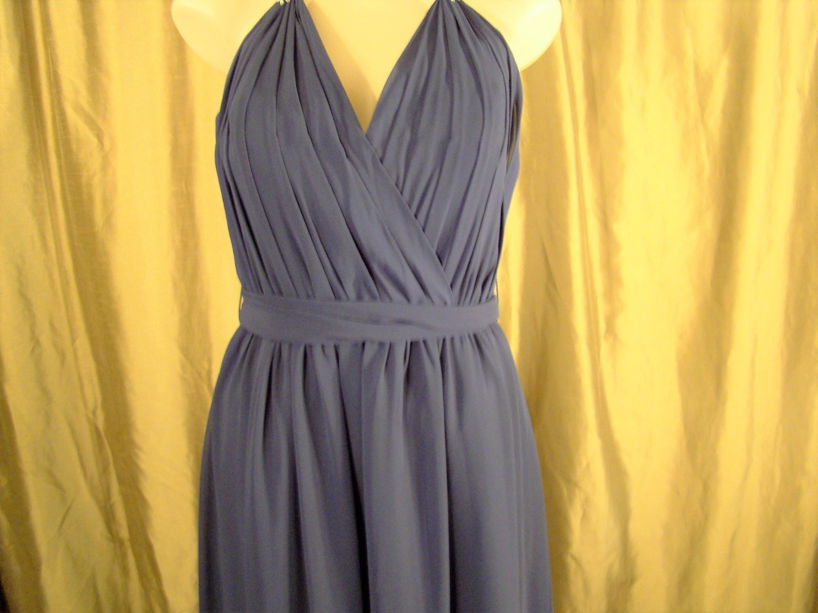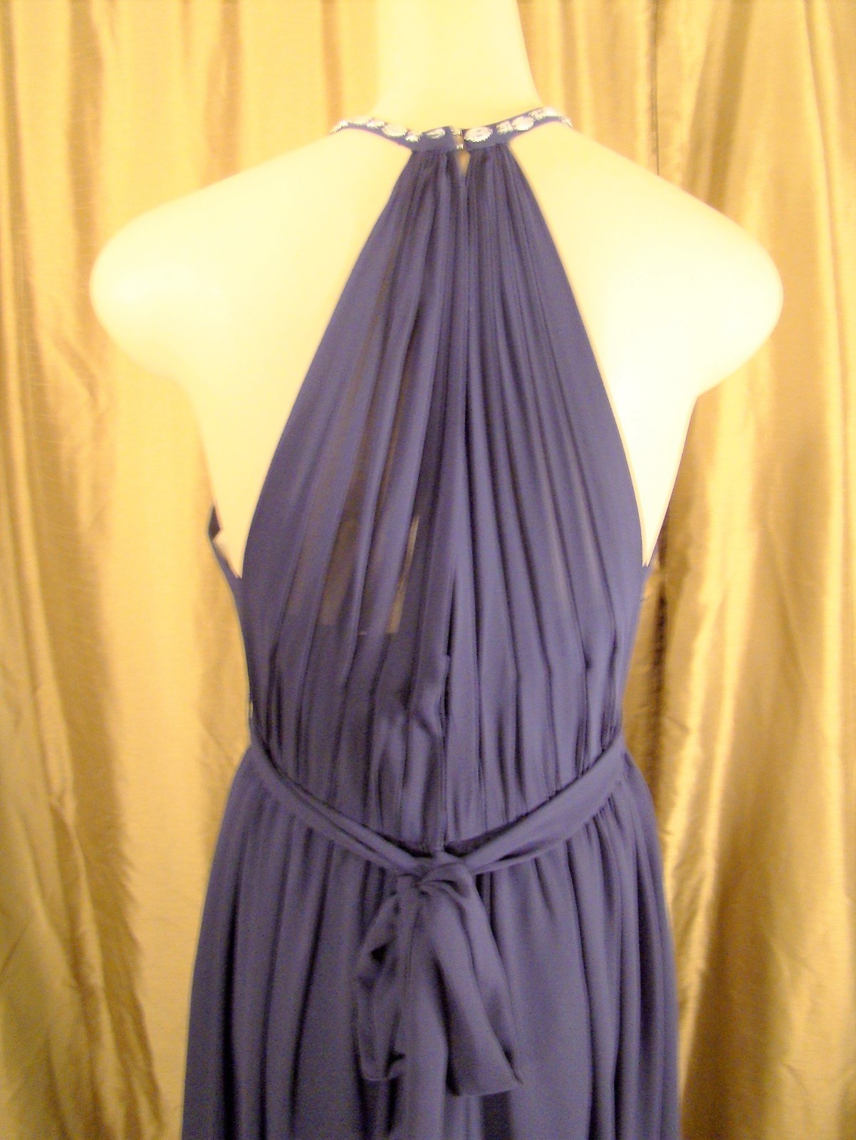 как выглядит Draped Chiffon Embellished Crystal Neckline Navy Blue Sz 10 Formal Prom Dress фото