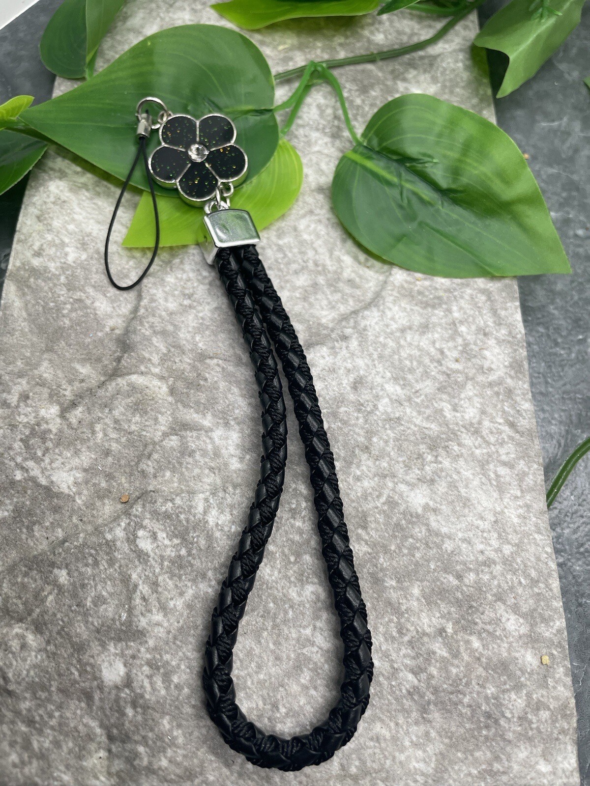 6 Enamel Charm Flower Woven Braided Keychain Phone Wristlet New A3511