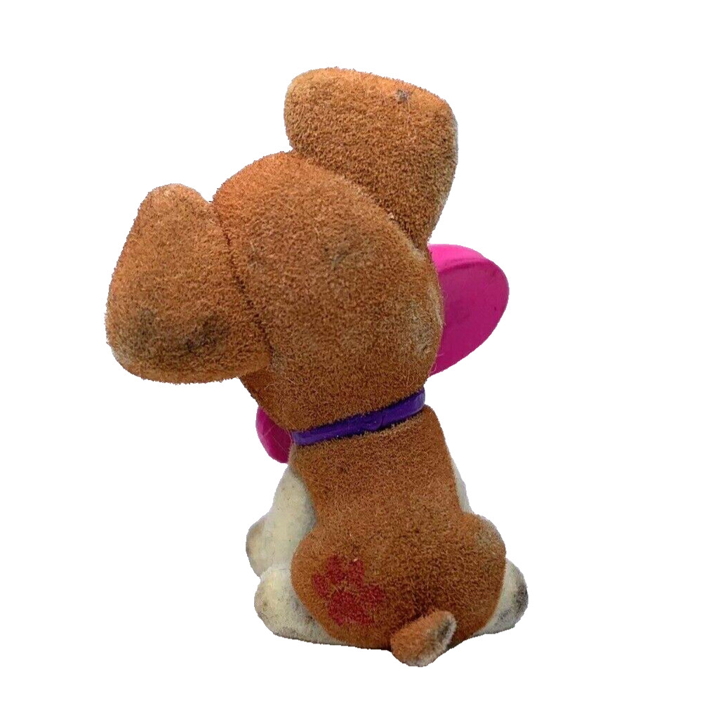 Barbie Pets Flocked Puppy Dog w Pink Slipper in Mouth Brown White Mattel
