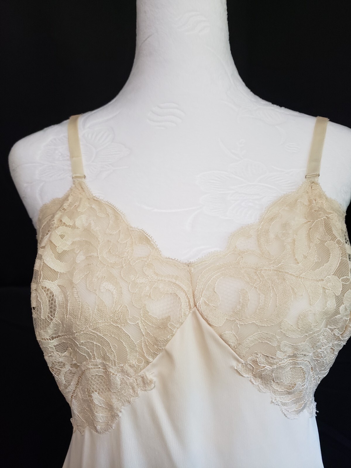 Wonder Maid Beige Lace Bodice Slip Dress Nylon Size 36 Style 2942 A