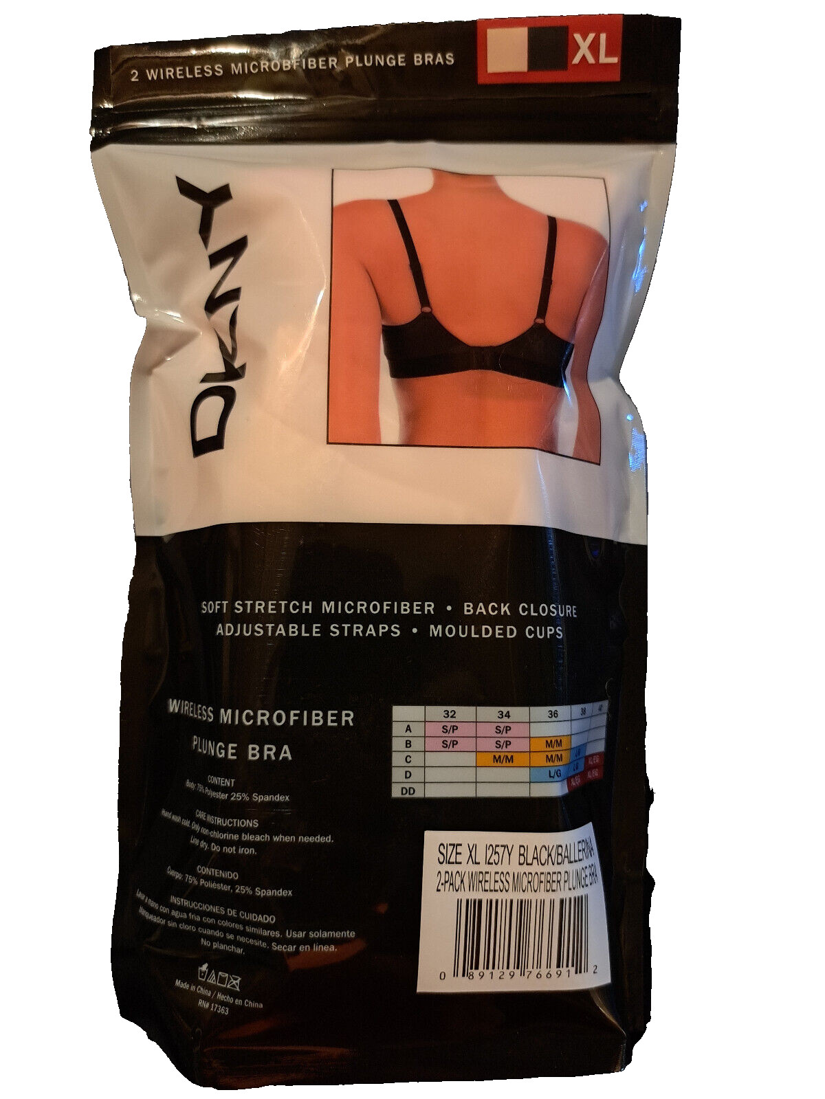 DKNY LADIES MICROFIBER PLUNGE BRAS, SET OF 2, INK/BALLERINA SIZE XL NEW
