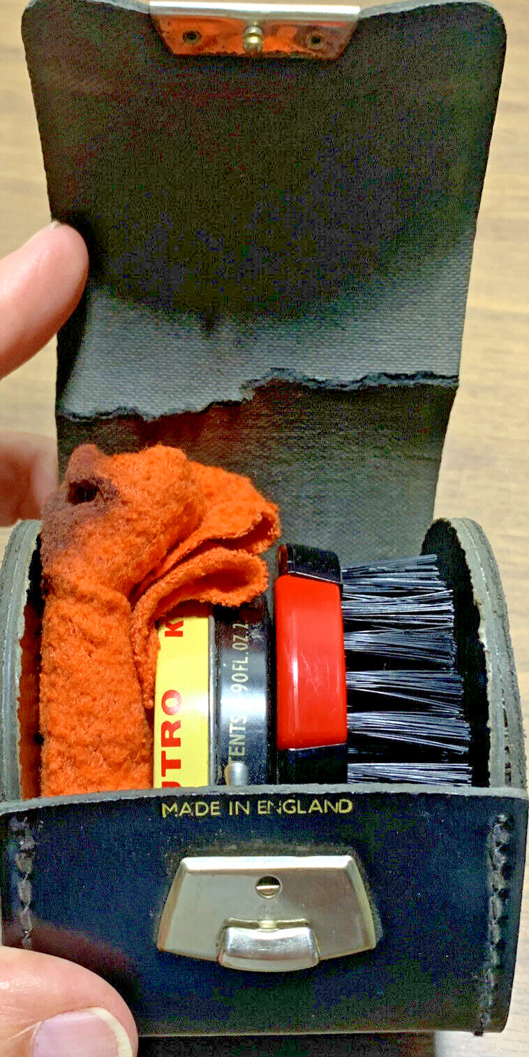 Mini Shoe Shine Kit Leather Case England Compact Size