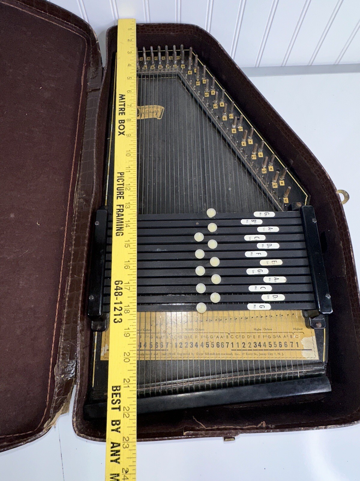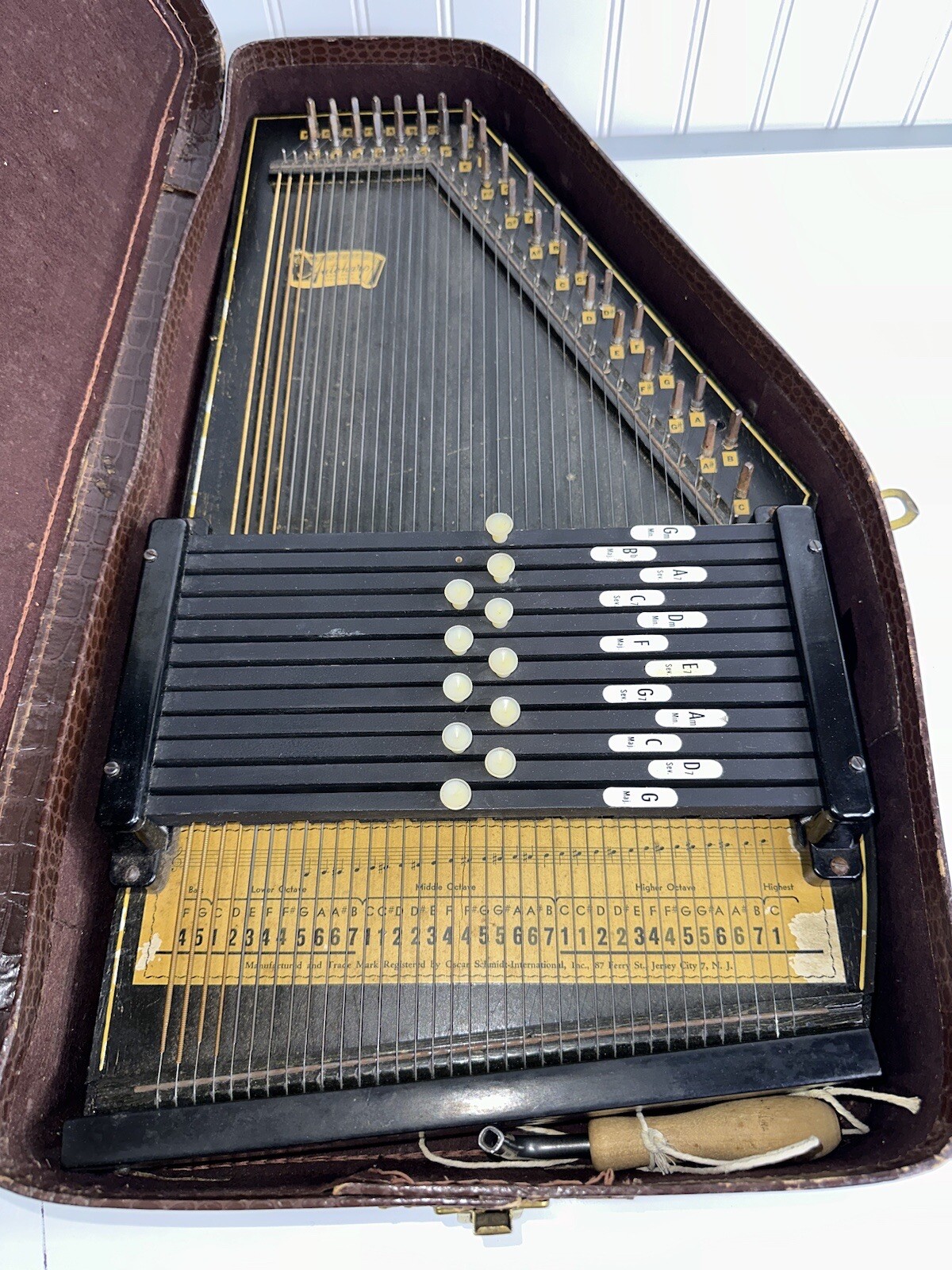 Vtg Oscar Schmidt Autoharp 36 String 12 Chord With Crocodile Brown Leather Case