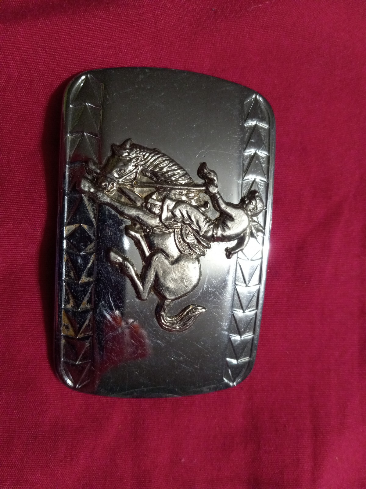 как выглядит Bucking Bronco Belt Buckle horse silver color фото