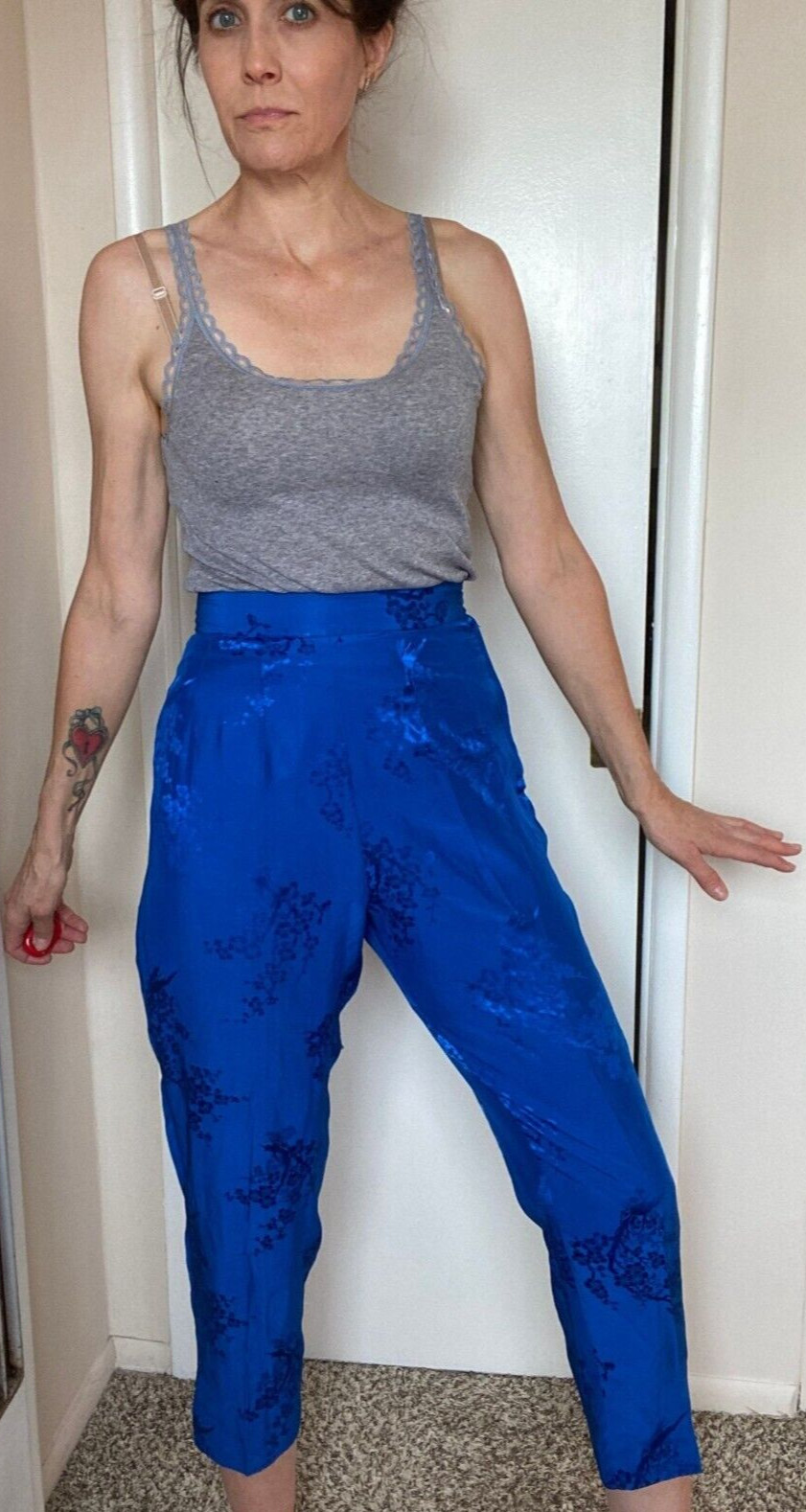 как выглядит VTG 40s silk Japanese Pants Pin-Up high waist blue 26" w XS 0 2 4 S Vintage PJ фото