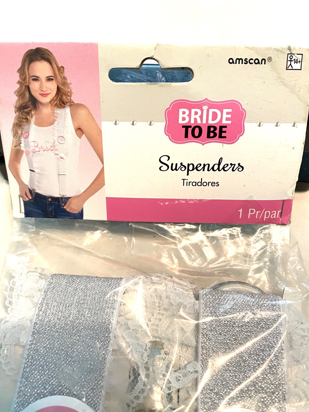 как выглядит BRIDE TO BE FUTURE MRS SASSY CLASSY SILVER PINK LACE SUSPENDERS фото