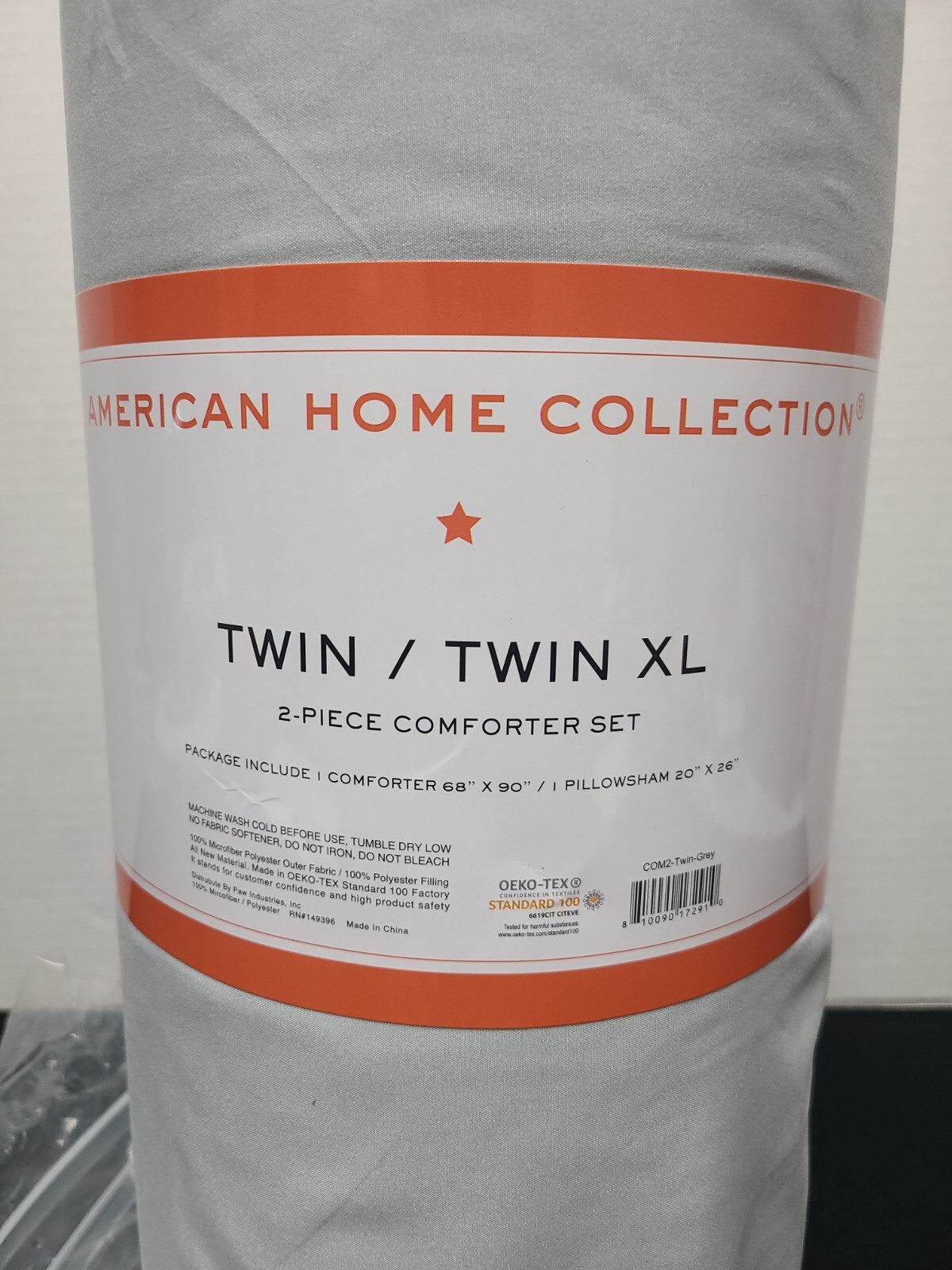 American Home Collection Twin/Twin Xl 2-Piece Comforter Set COM2-TWIN-GREY New