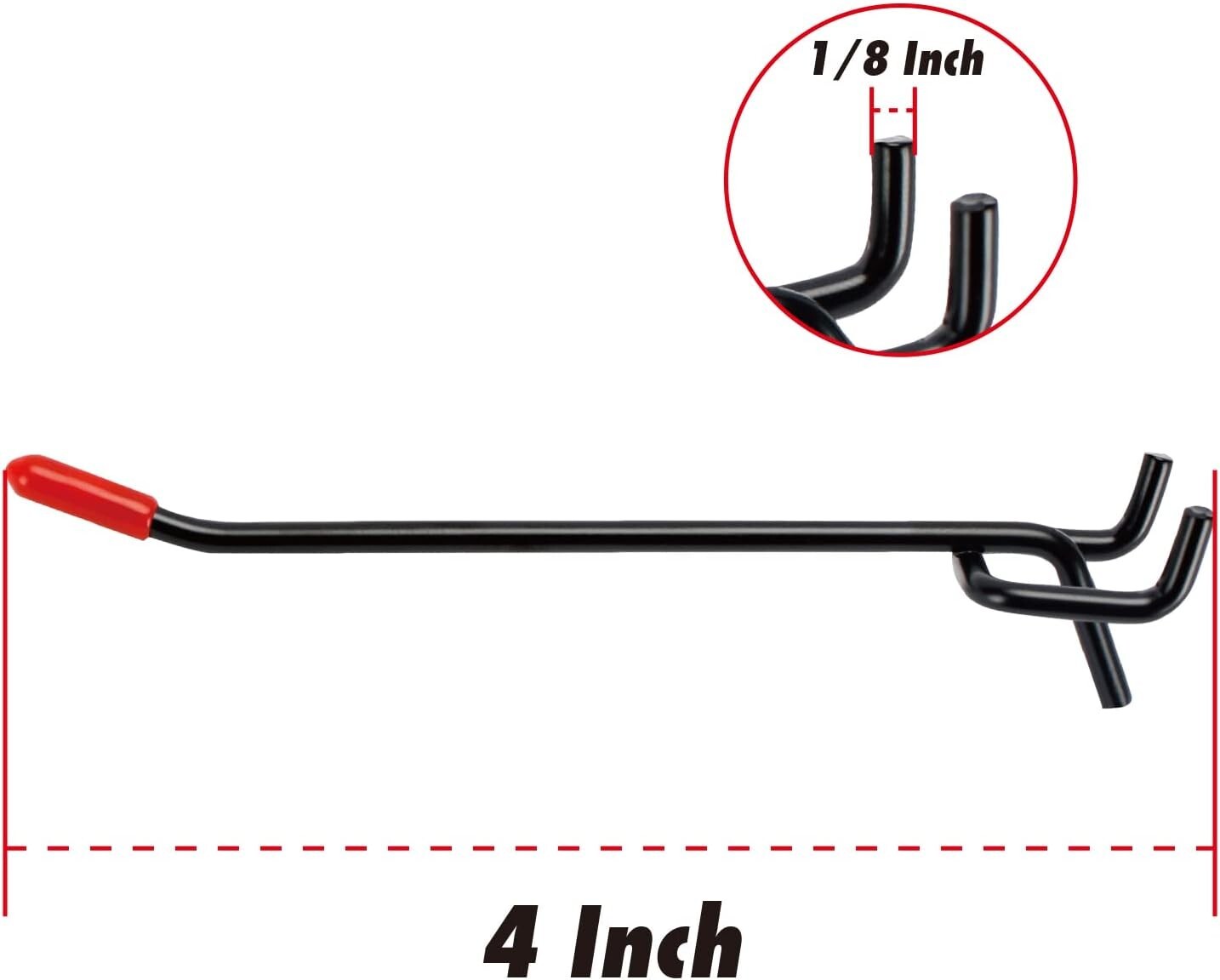 4-Inch Pegboard Hooks Hanger Organizer Assortment with Red Cap, 50-Piece, Black