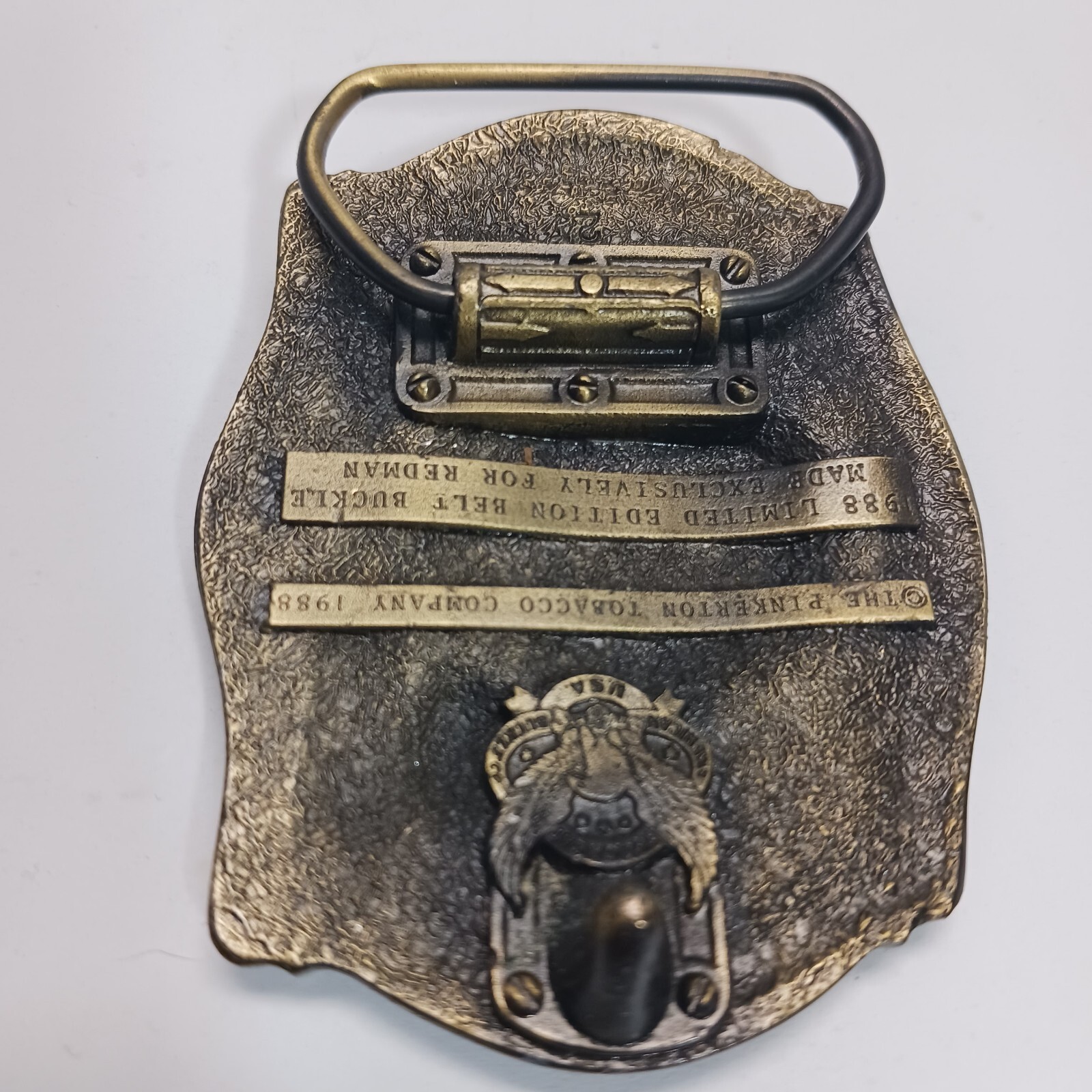 как выглядит Vintage Red Man Tobacco Belt Buckle American Pinkerton Company Collector 1988 фото