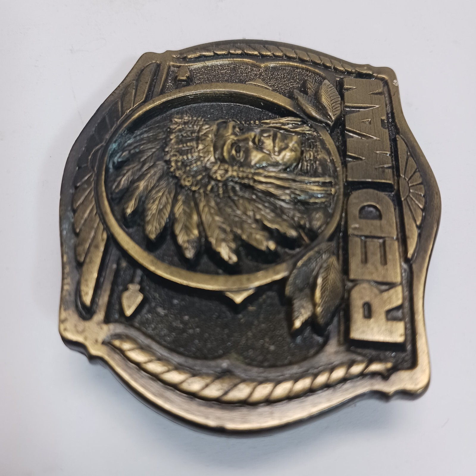 Vintage Red Man Tobacco Belt Buckle American Pinkerton Company Collector 1988