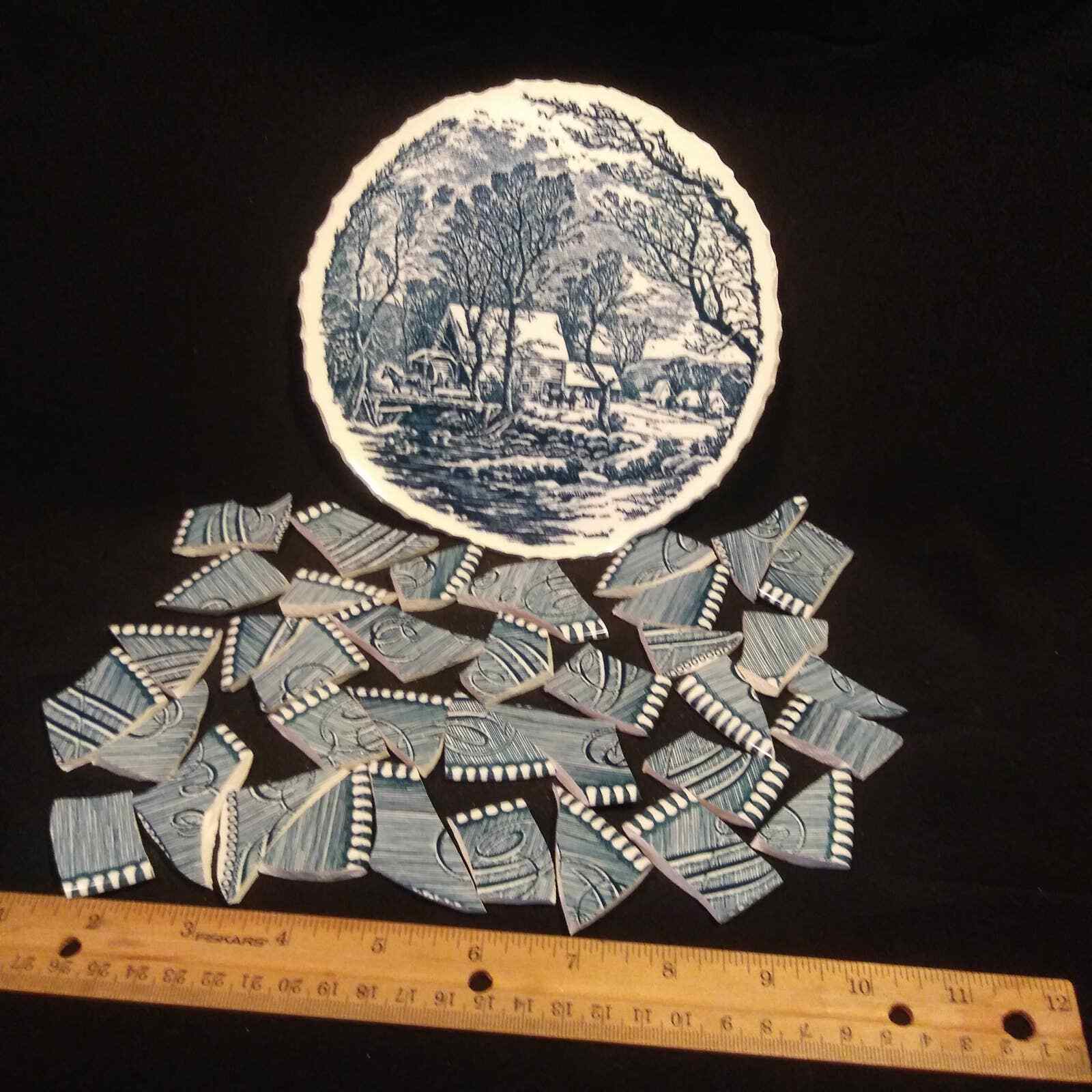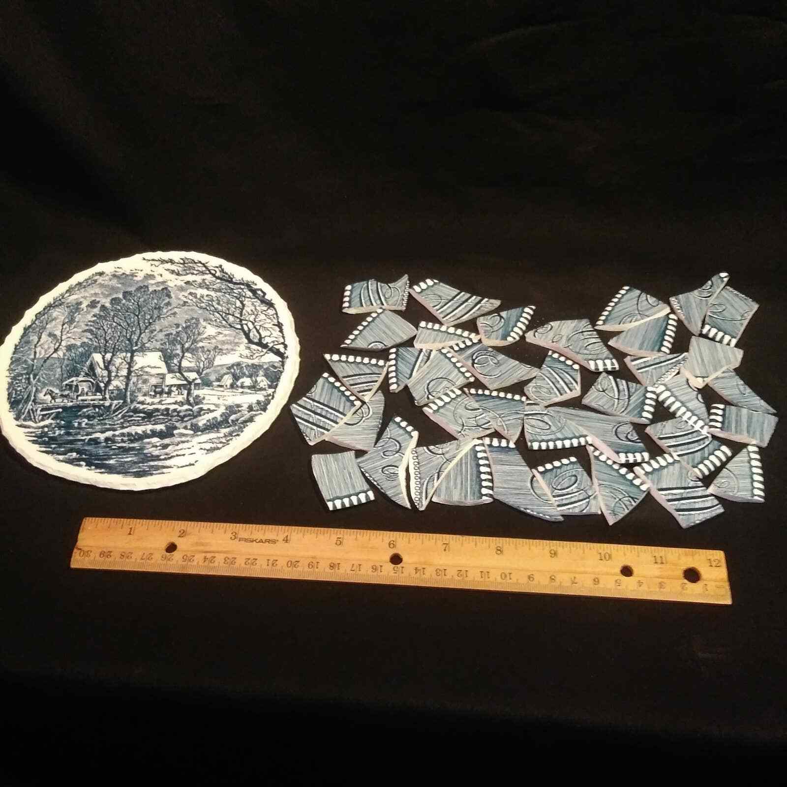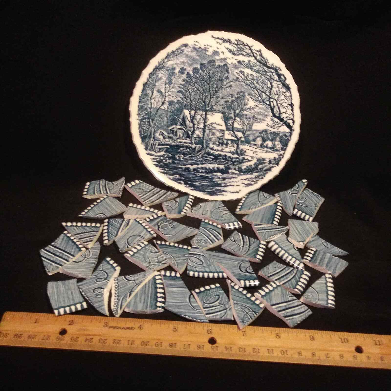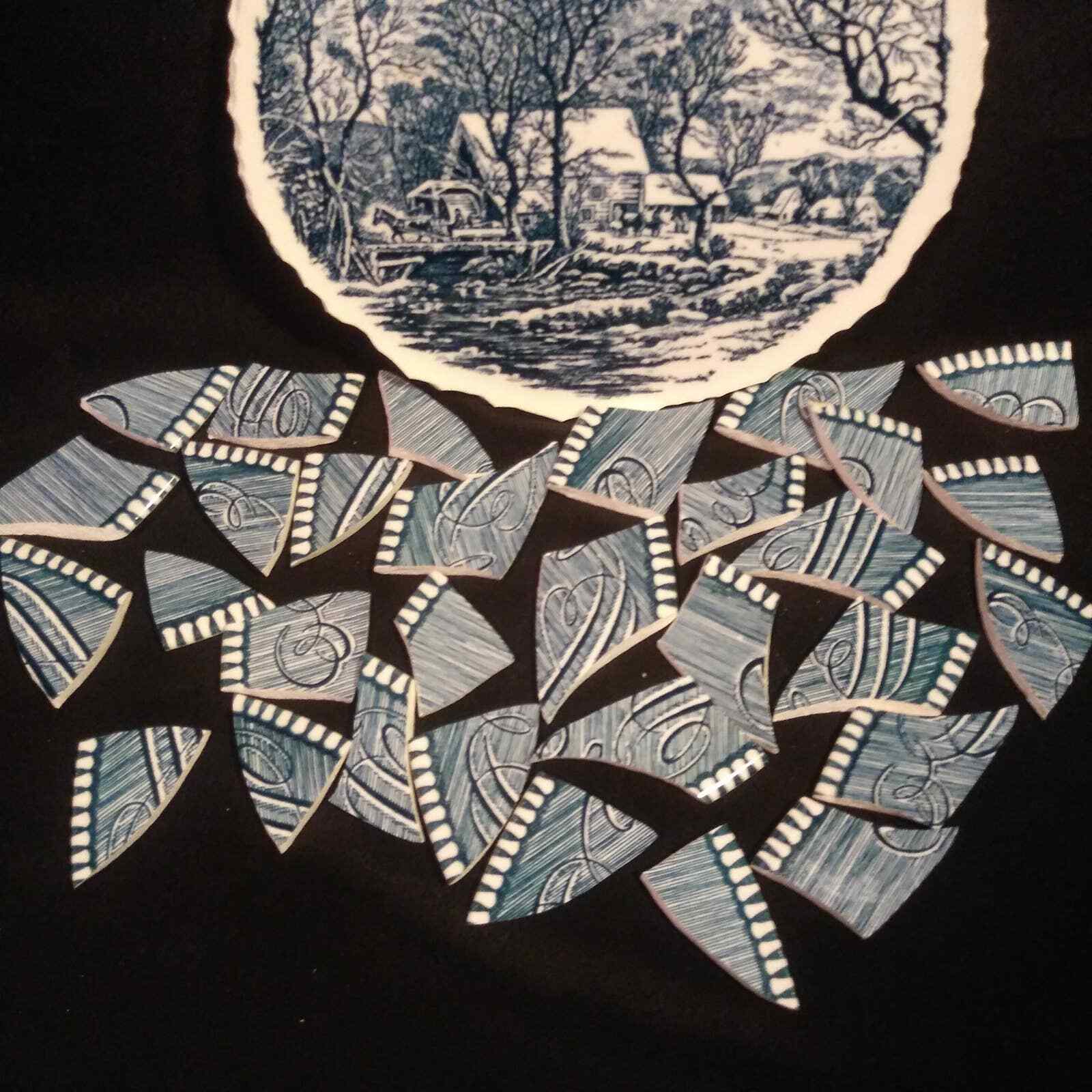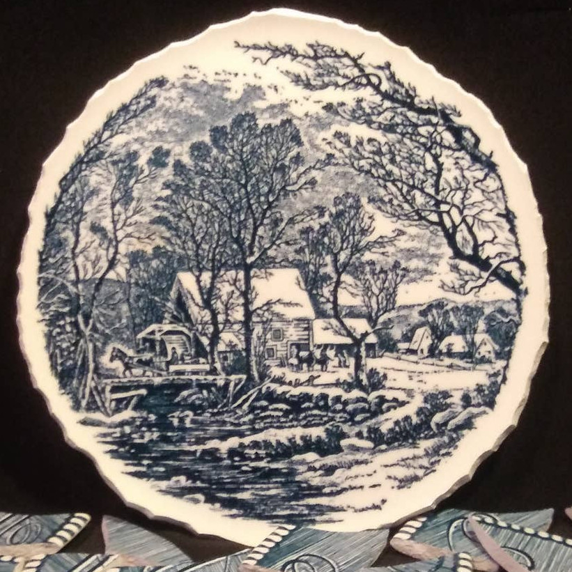 Mosaic Supply Currier Ives Blue and White Tiles with Focal