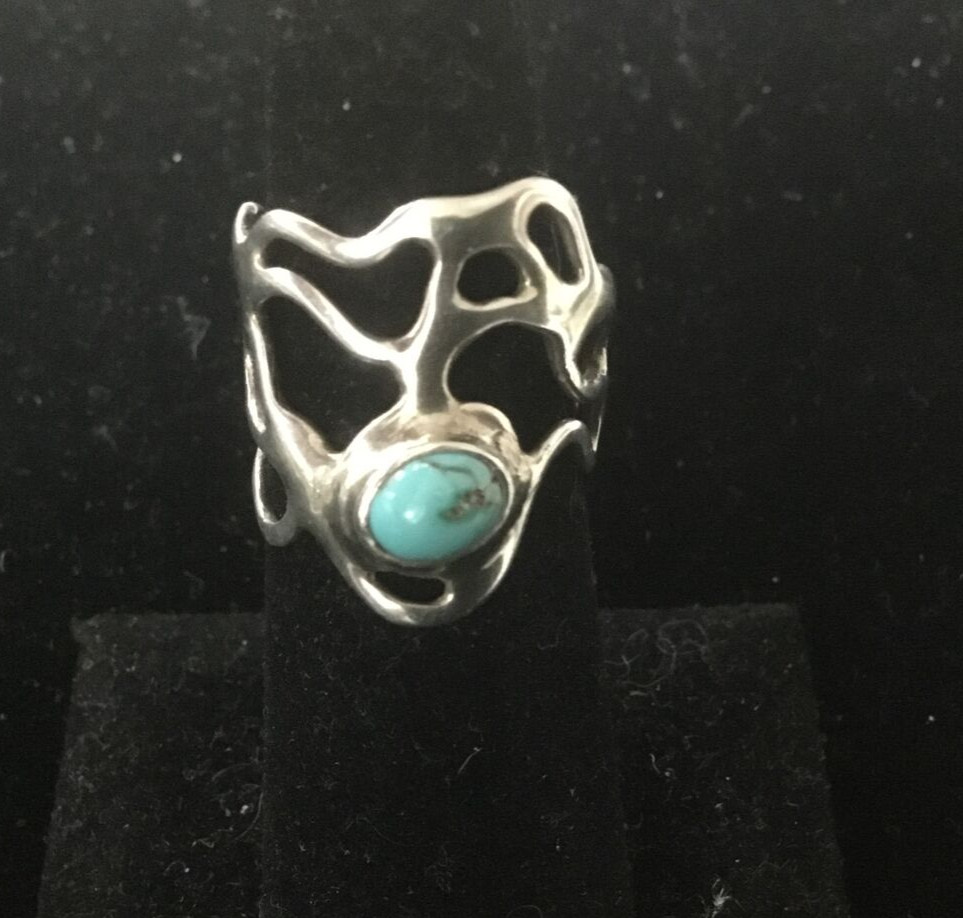 925 Woven Sterling Silver and Turquoise Ring Unique design 5.2 grams Size 6