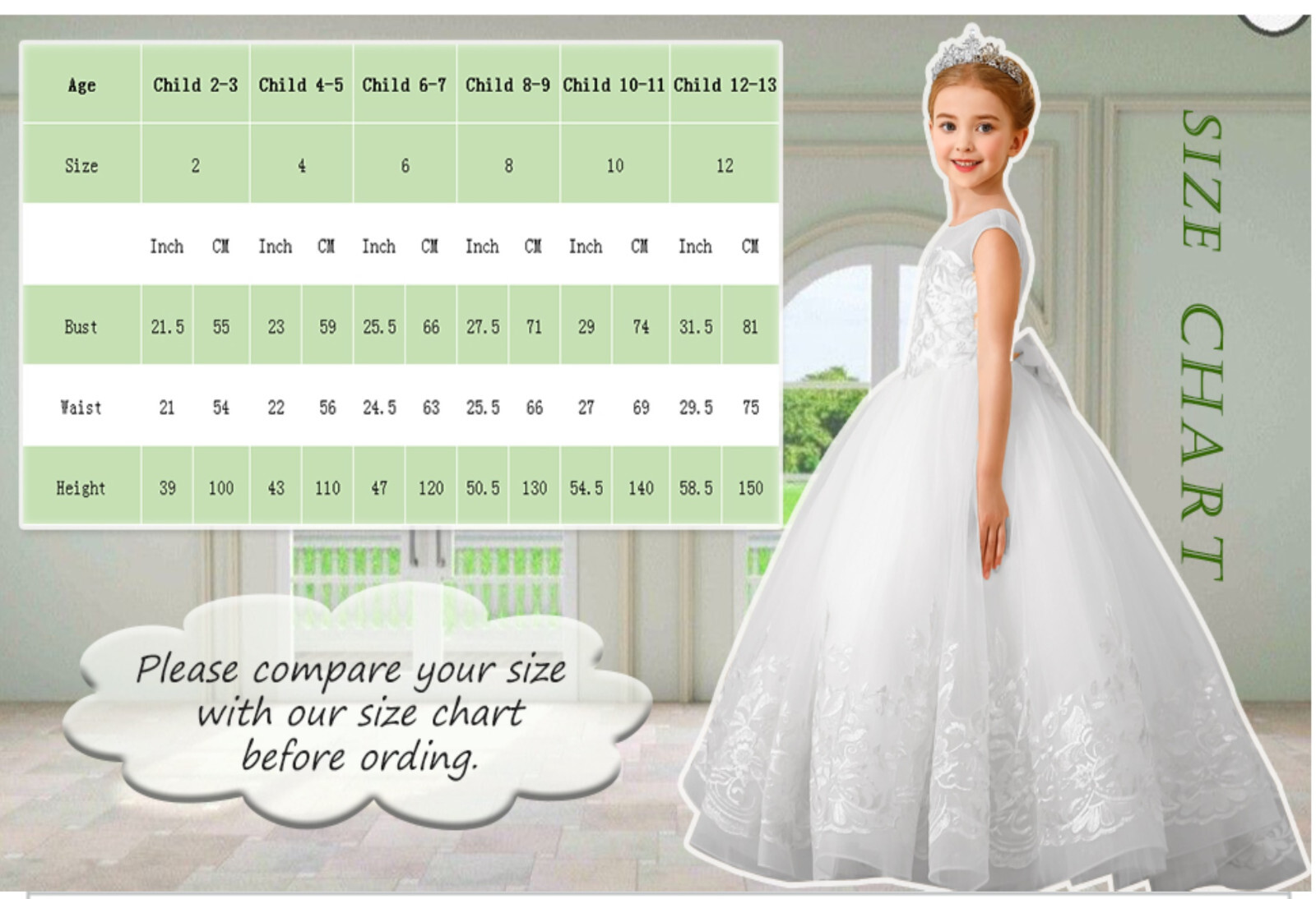 ABAO SISTER Girls 2-3 Embroidered White Gown for Weddings Pageants Flower Girl