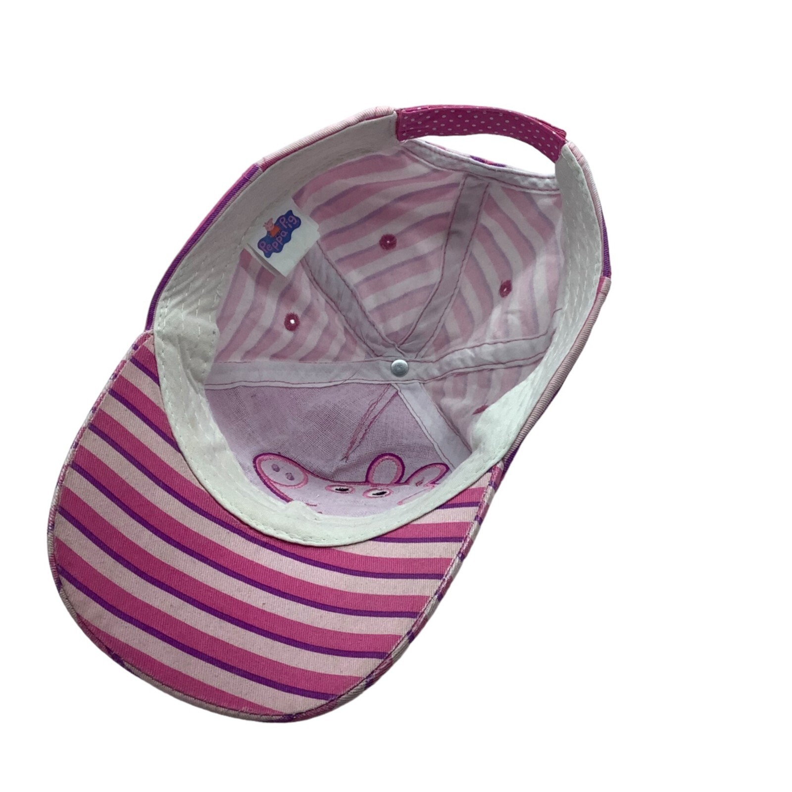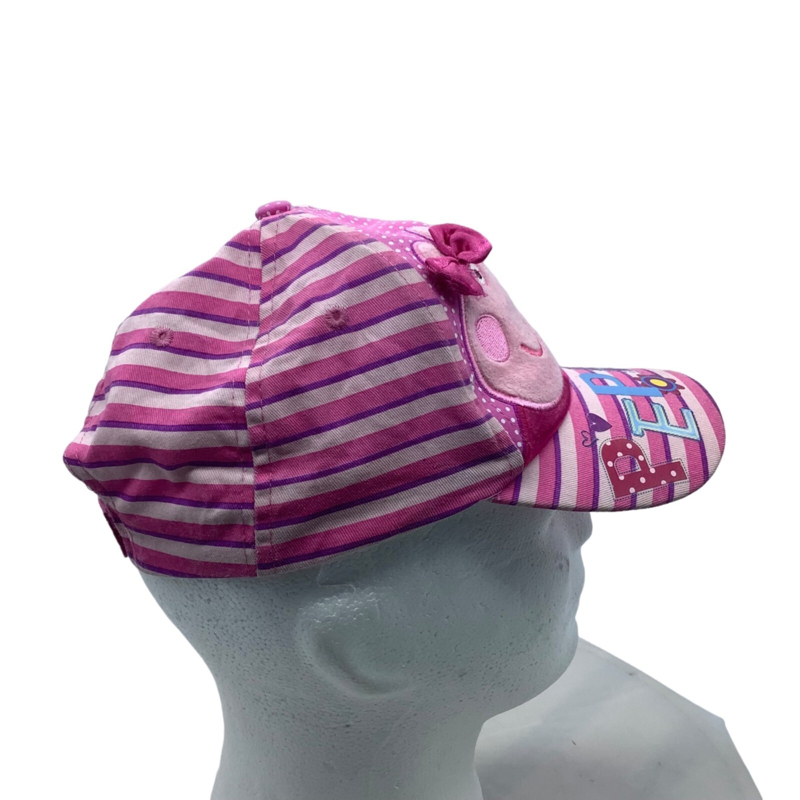 как выглядит Vtg Peppa Pig Baseball Cap Hat Girl Adjustable Size Pink Stripes Polka Dot Bow фото